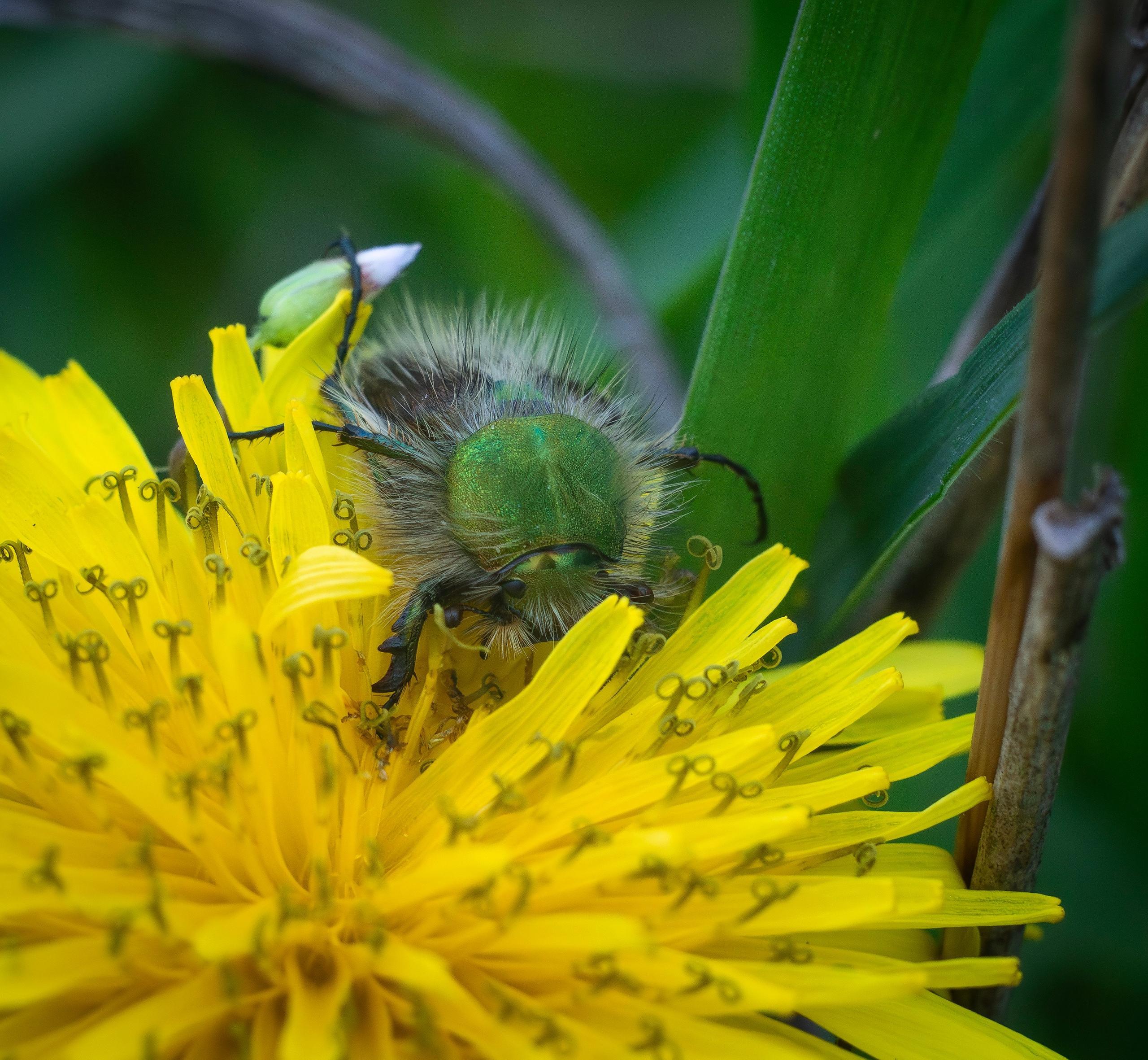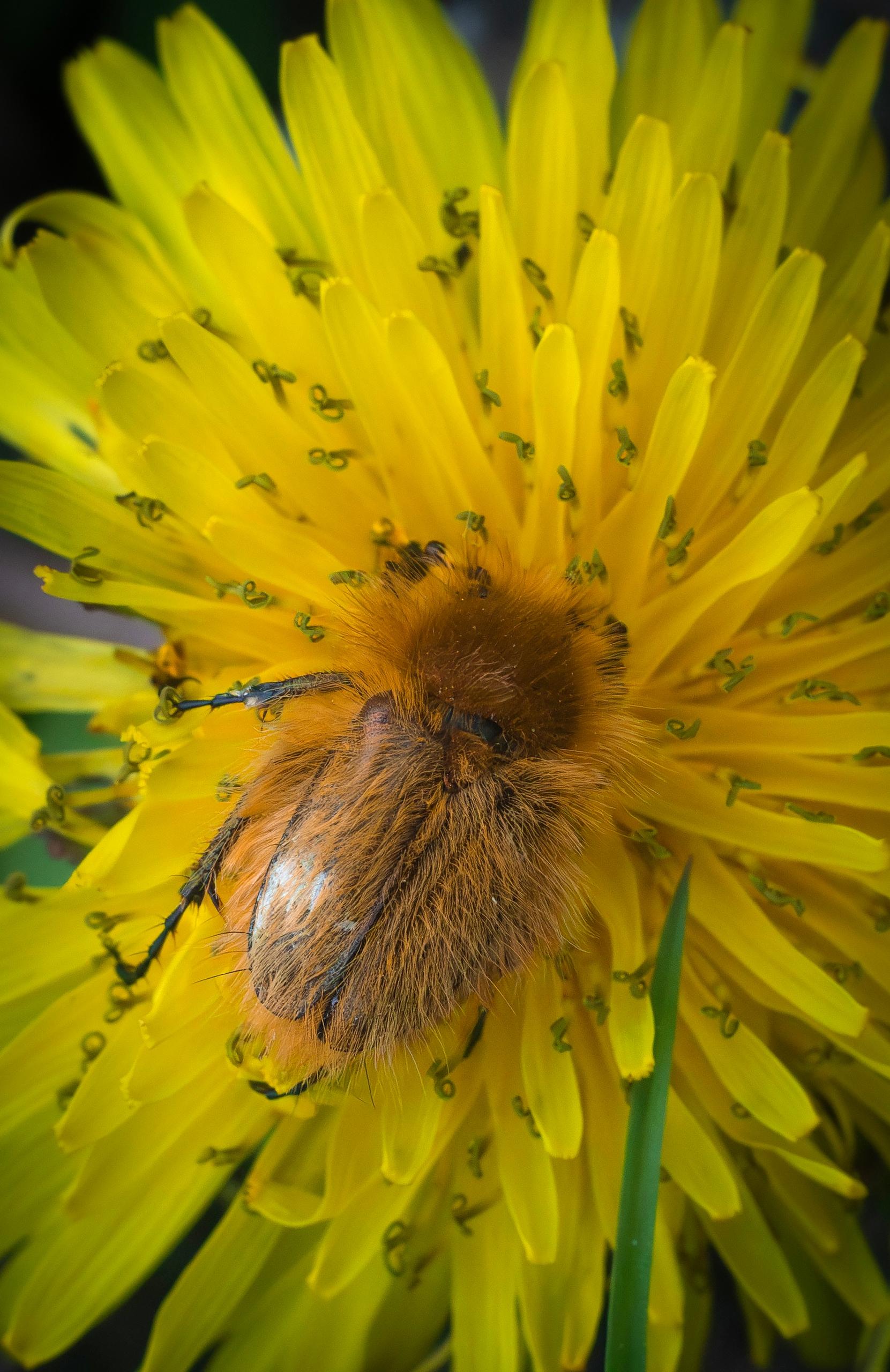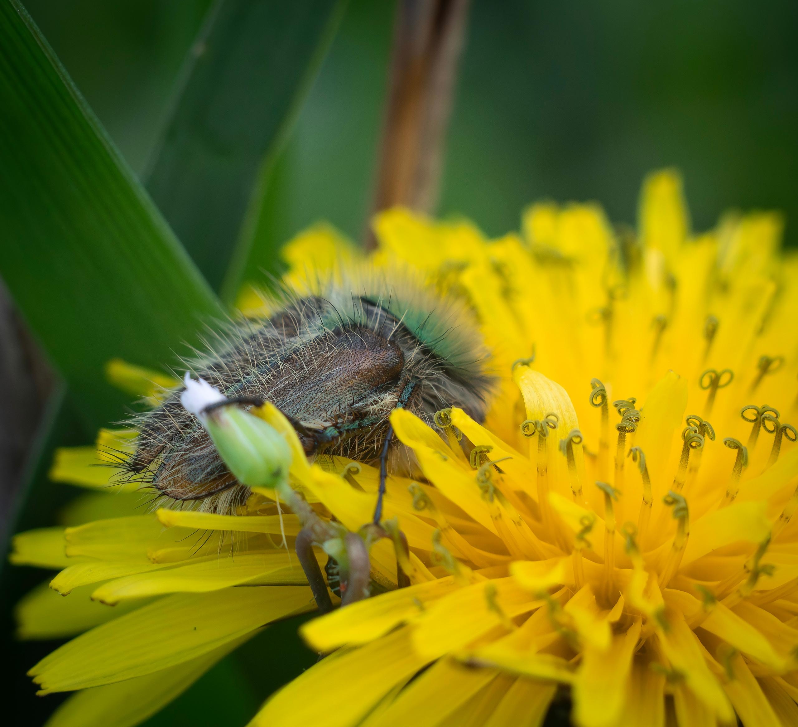 «Не знаю, как вы относитесь ко всякому роду козявок, лично я по весне радуюсь любой живности, — написала Марина Юдина. — Мне кажется, что кто-то шутки ради понавтыкал в одуванчики кучу ножниц, а вы что скажете? Я так поняла, что оба жука сильные и независимые, столовались за отдельными одуванчиками…»
