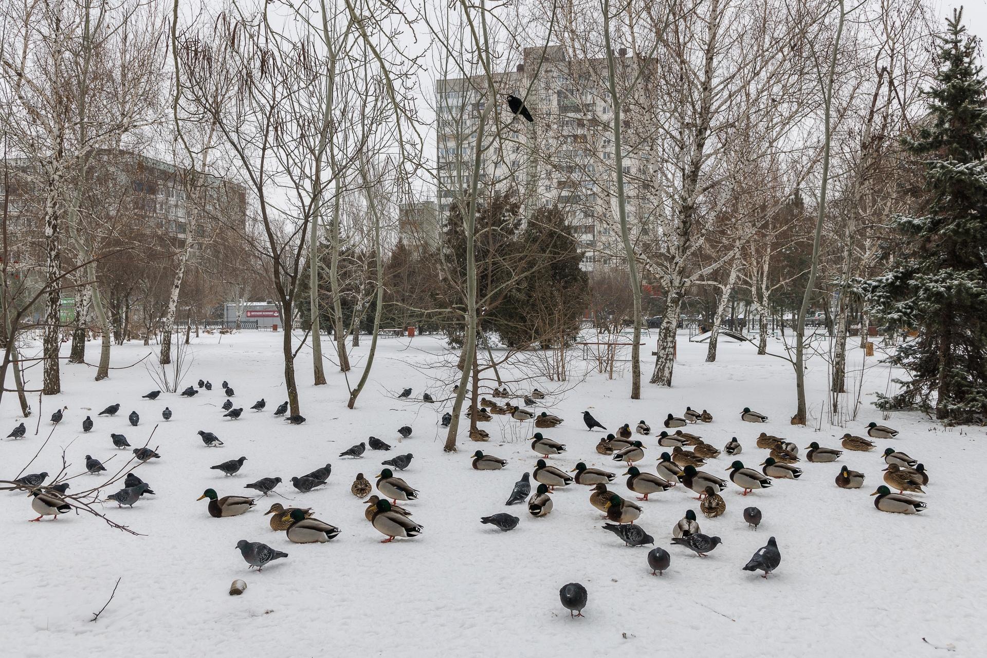 Волгоградцы переживают за уток в морозном парке