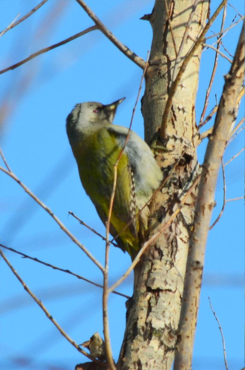 В Волгоградской области сфотографировали седого дятла, оперение которого включает желтые оттенки. Это третья встреча за 20 лет.
