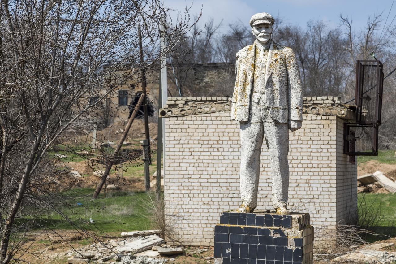 Полуразрушенная скульптура Ленина без руки в Заплавном