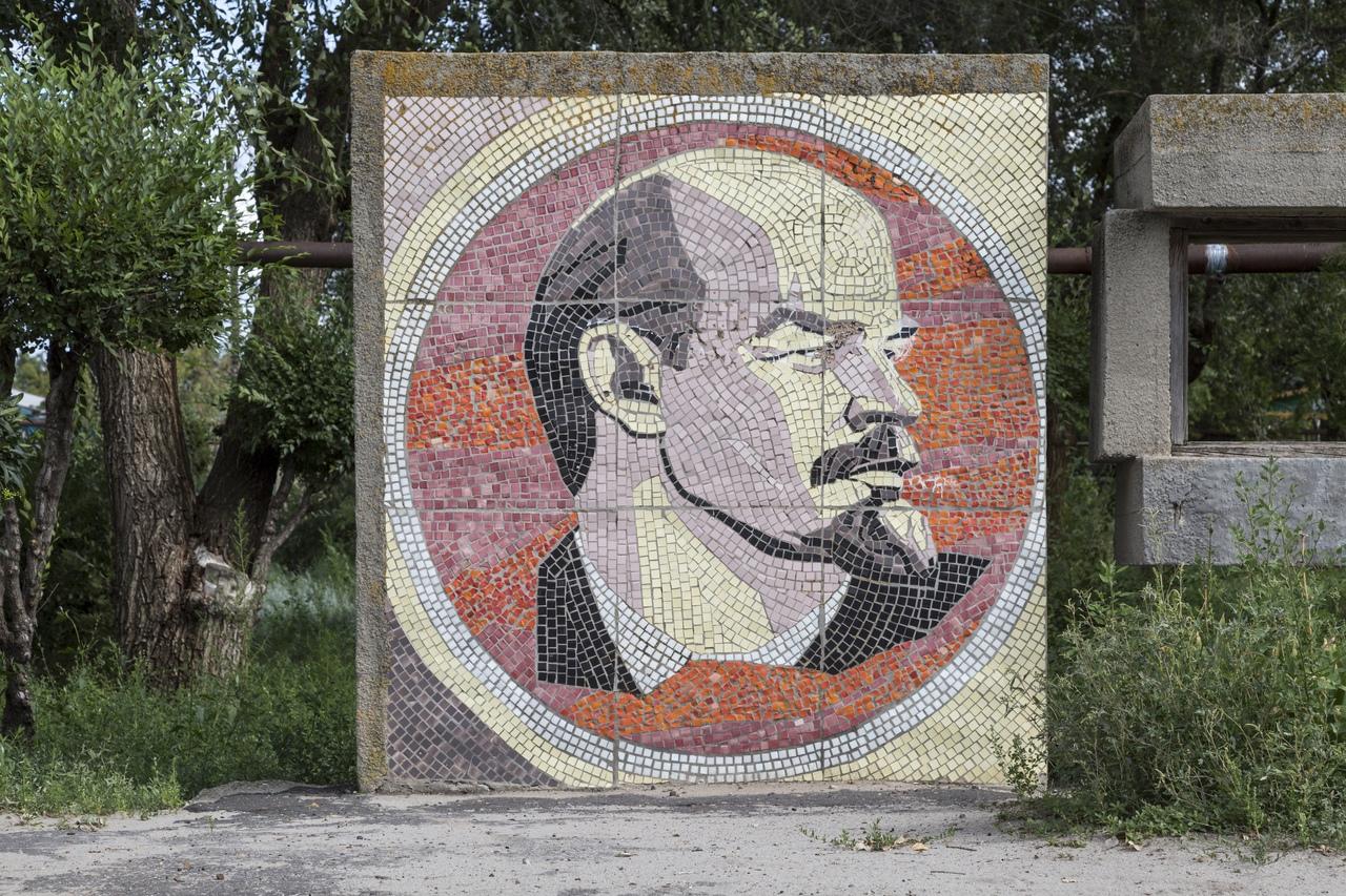 В посёлке Приволжский Ленин изображён не в виде памятника, а как мозаичное панно