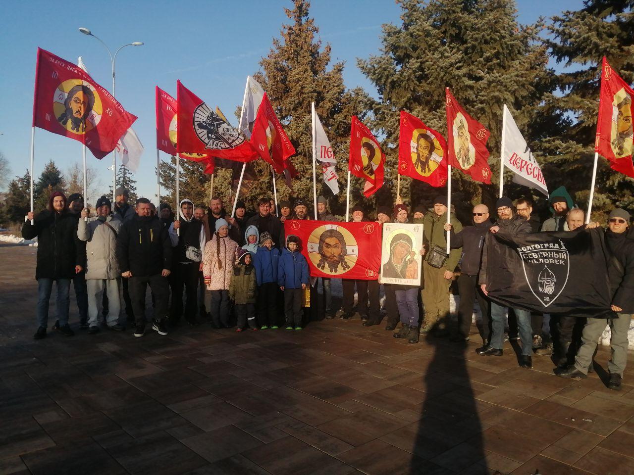 4 января в парке города Волжского местные жители стали свидетелями необычного шествия. Десятки мужчин разного возраста шли с высоко поднятыми алыми и белыми флагами, на которых были изображены Христос и воины. Участники громко пели молитвы, а развевающиеся на ветру стяги привлекали всеобщее внимание. Некоторые прохожие лишь удивлённо смотрели вслед, другие, осенив себя крестным знамением, присоединялись к процессии. Так прошёл традиционный мужской крестный ход.