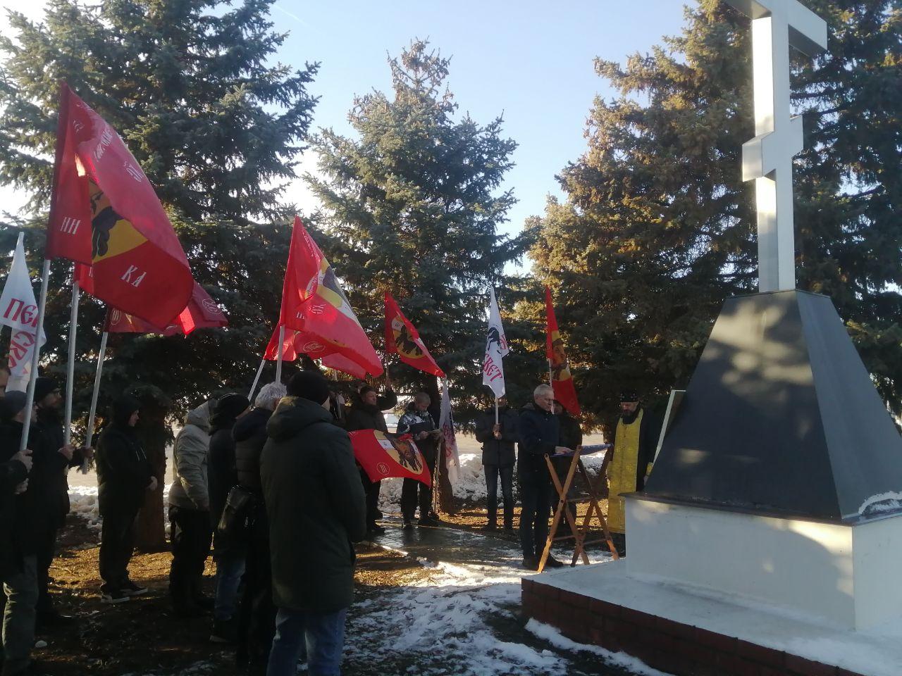 Возле креста, установленного на месте разрушенного храма Николая Угодника, мужчины поочерёдно читали молитвы за родную землю. Они почтили память павших русских воинов и попросили благословения для своих соотечественников перед ликом иконы Богоматери.