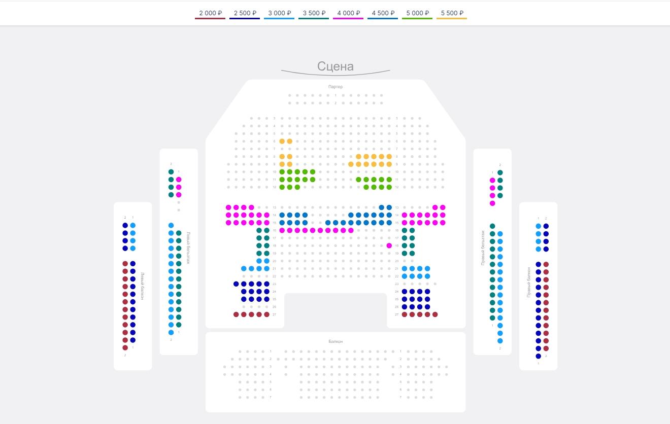 Согласно обновленной схеме зала, цены на билеты снова изменились. Теперь самый дорогой билет стоит 5500 рублей, что в два раза меньше первоначальной стоимости.