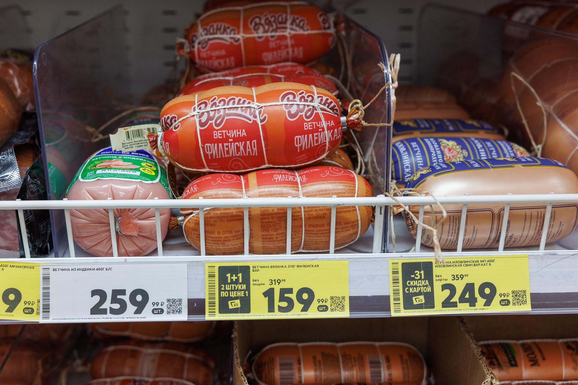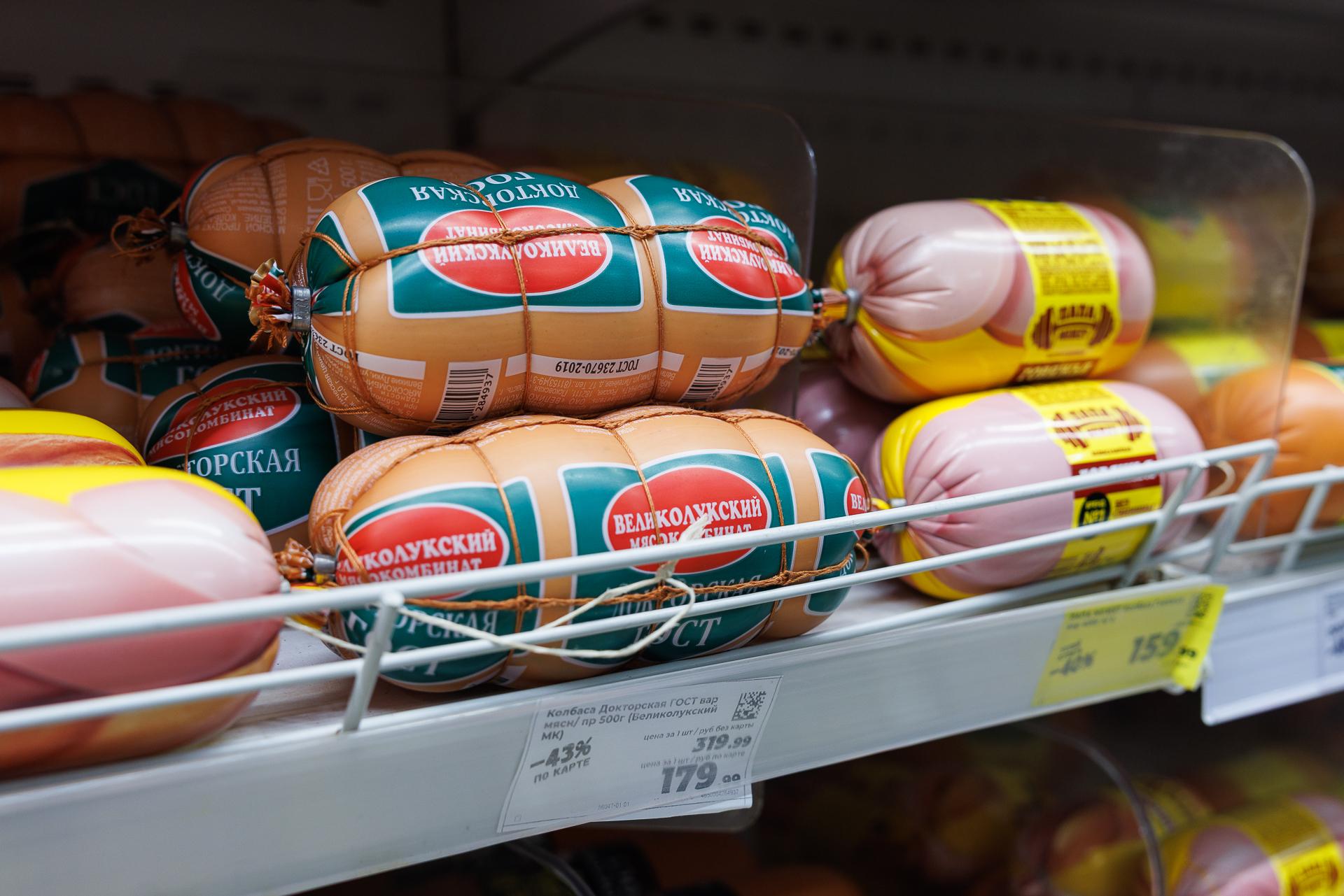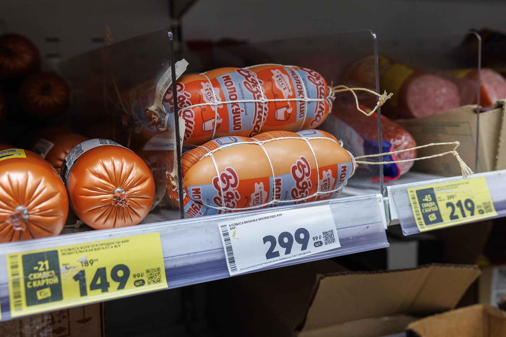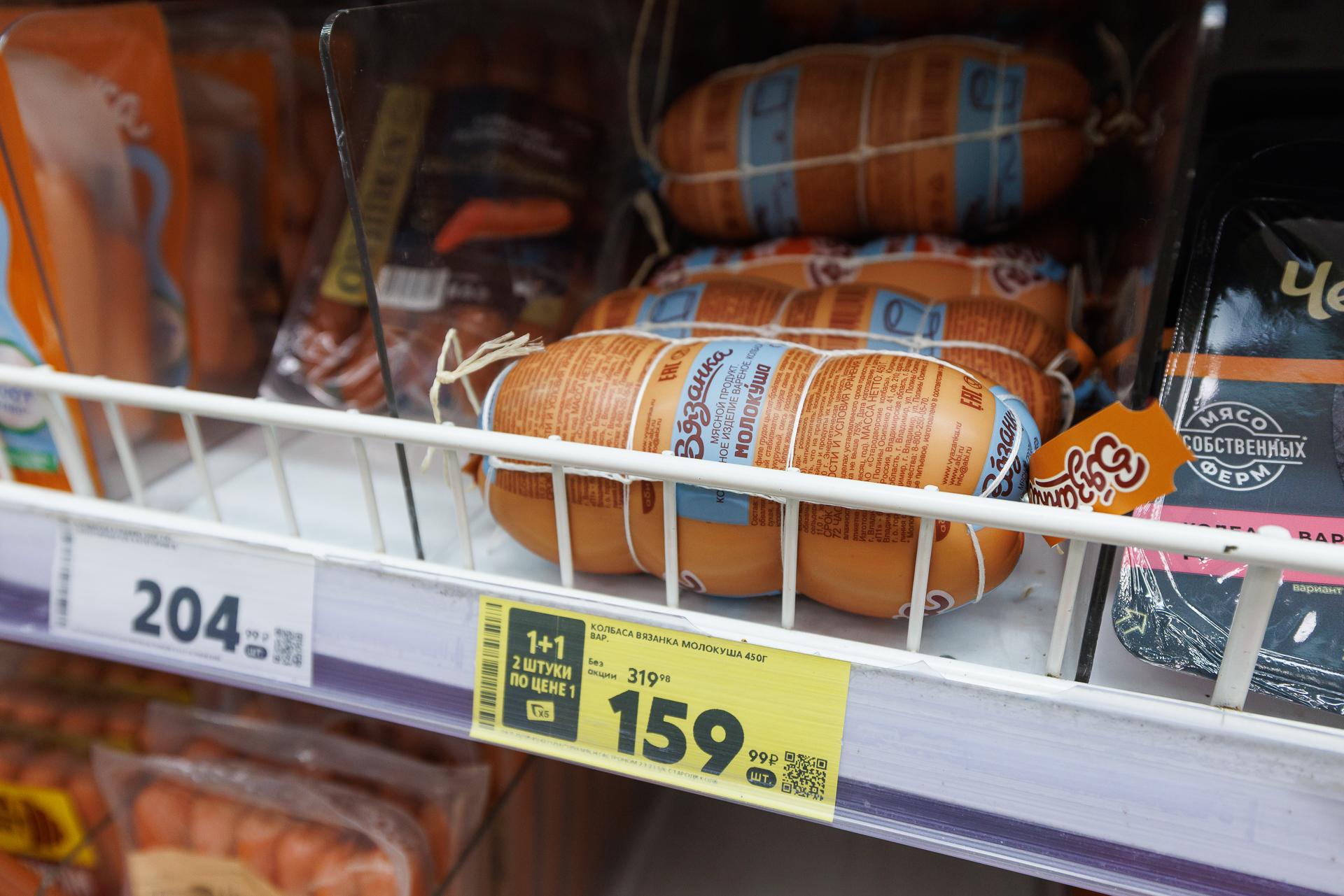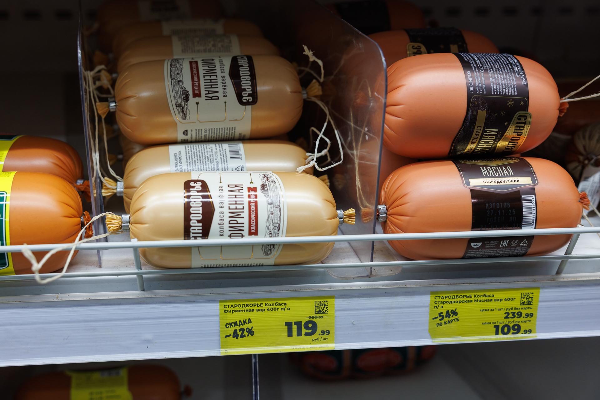Стоимость колбасы в ноябре в «Пятёрочке».
