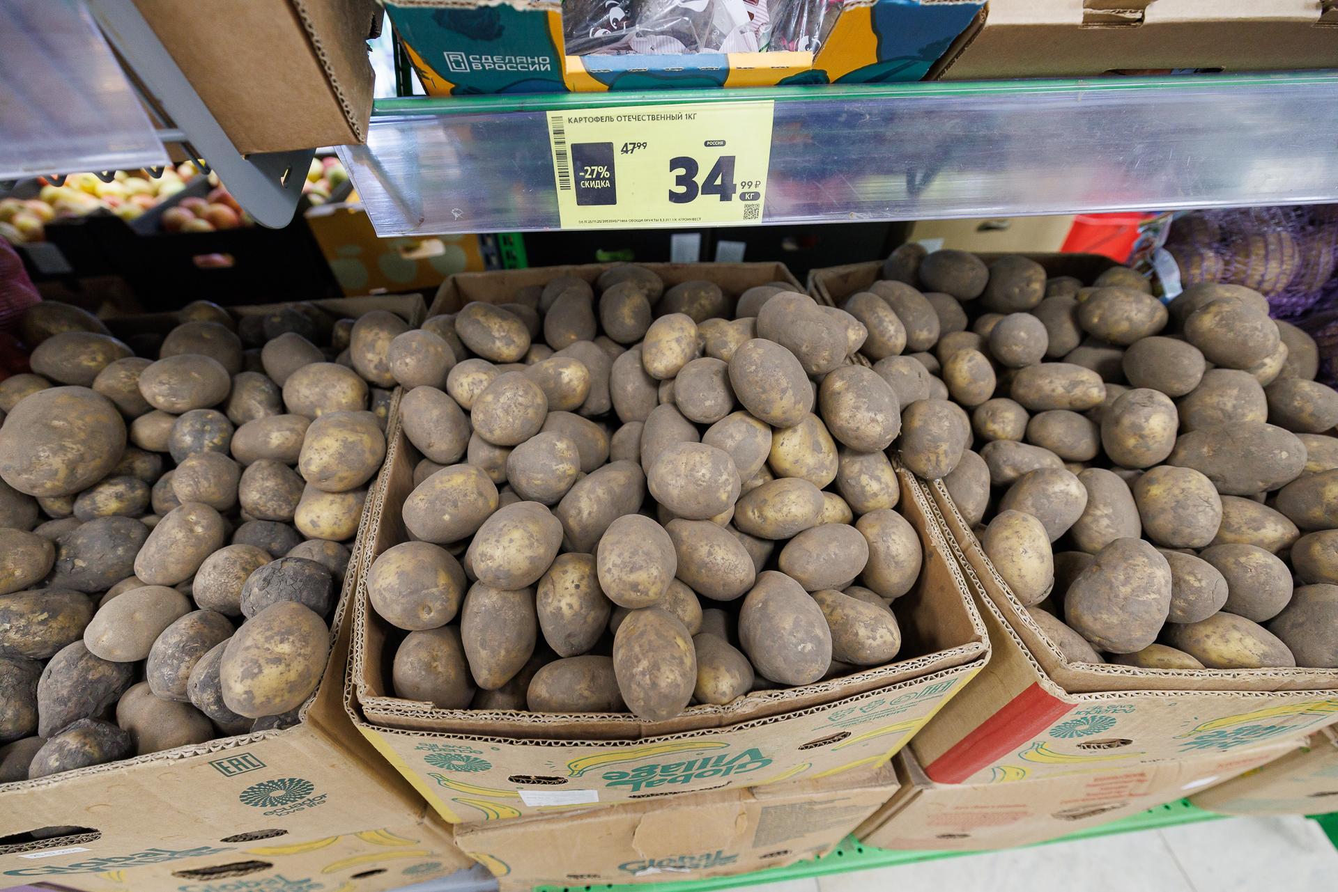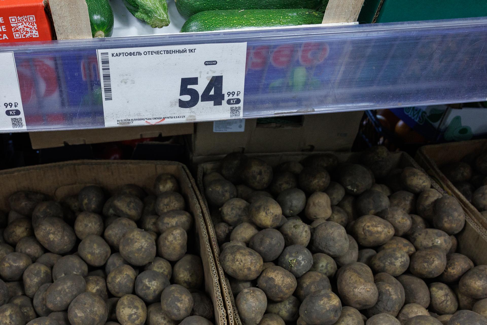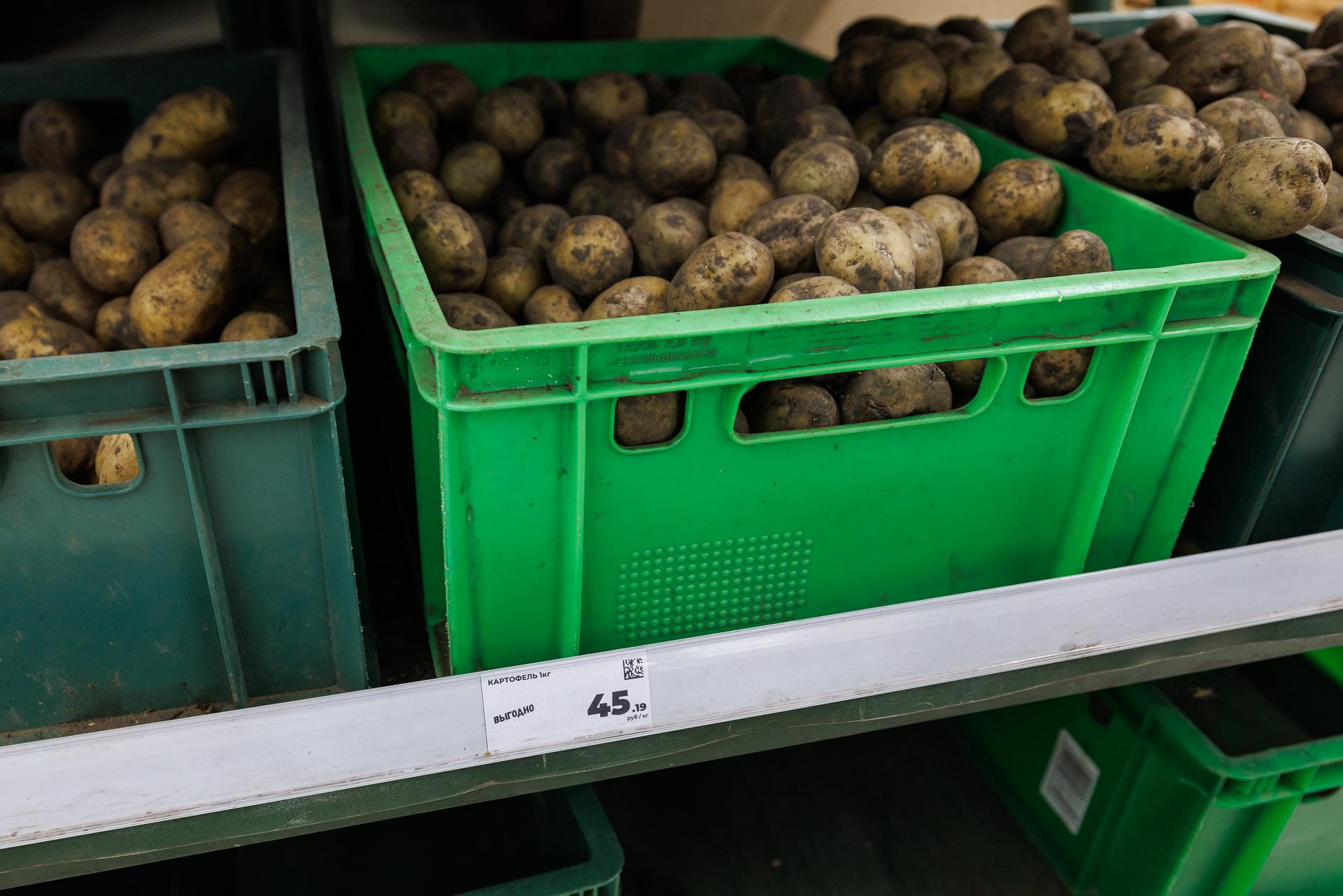 В «Пятёрочке» картофель в ноябре стоил 35 рублей за килограмм, через полтора месяца — 55 рублей.