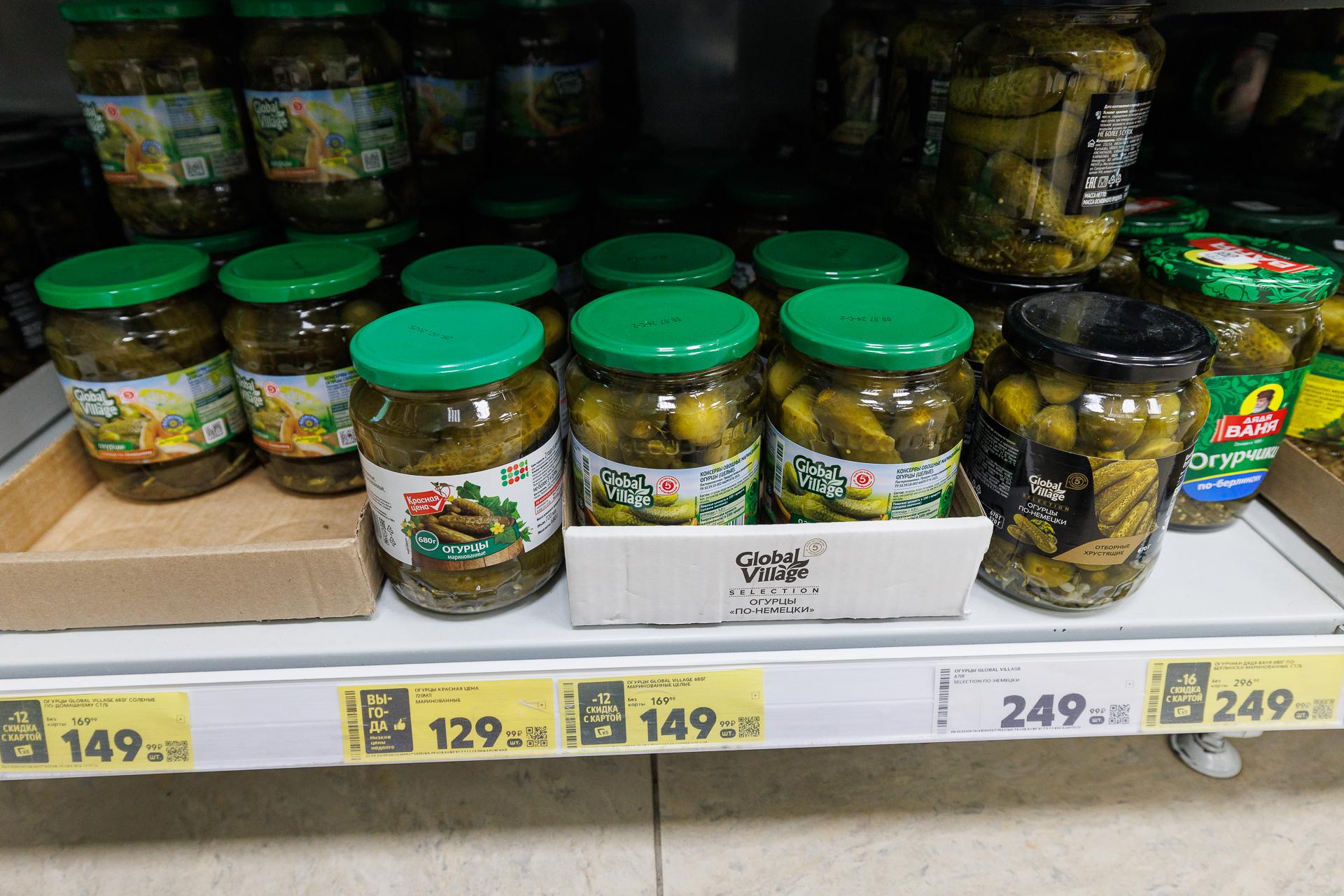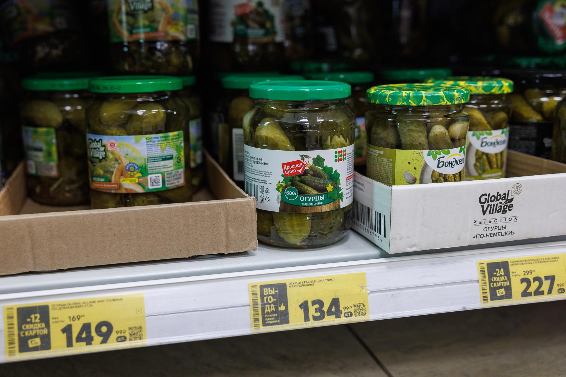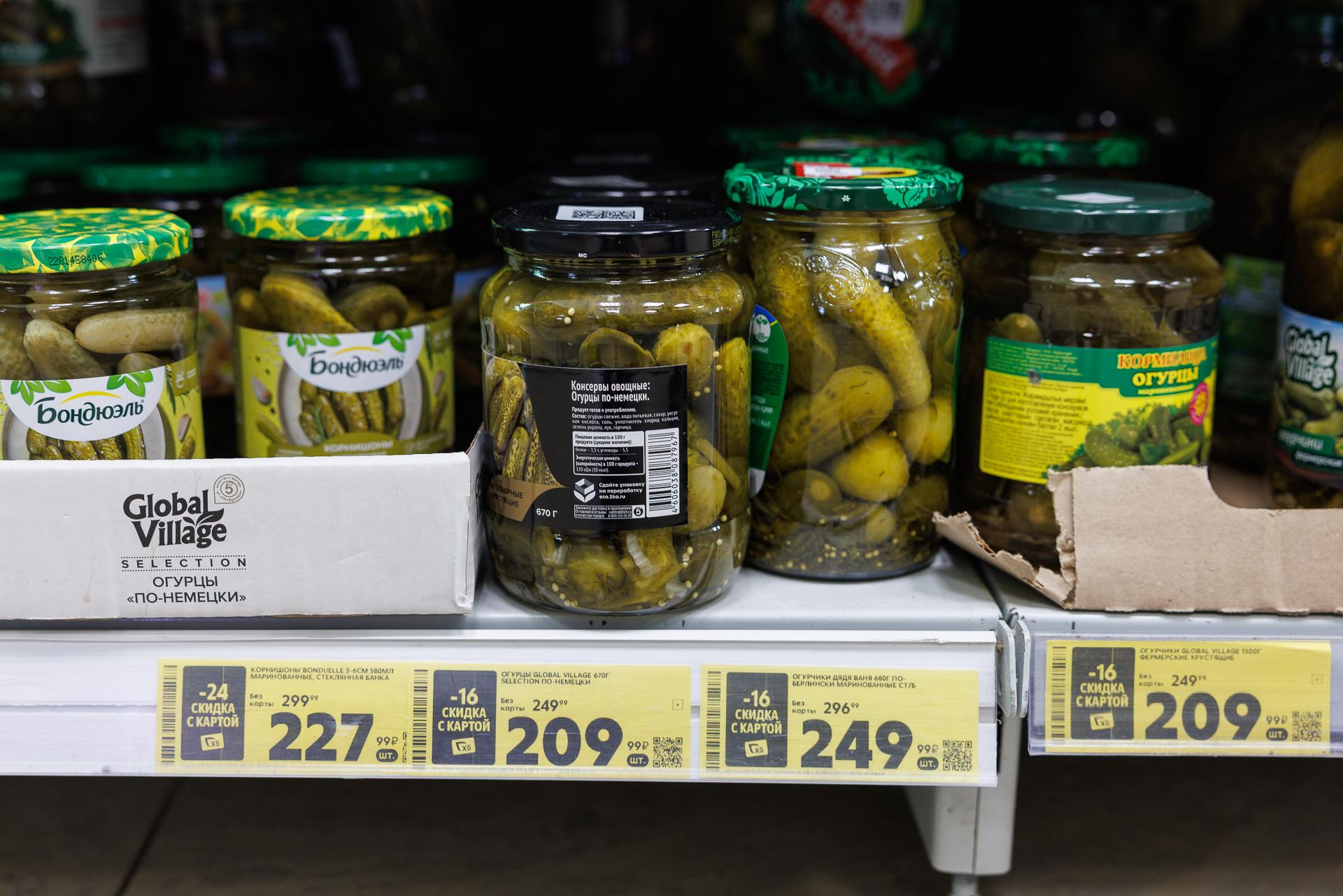 4. Огурцы. Солёные и маринованные огурцы в «Пятёрочке» в начале ноября имели такую цену.