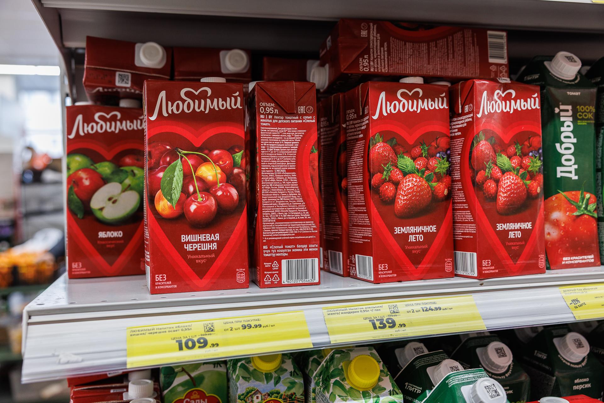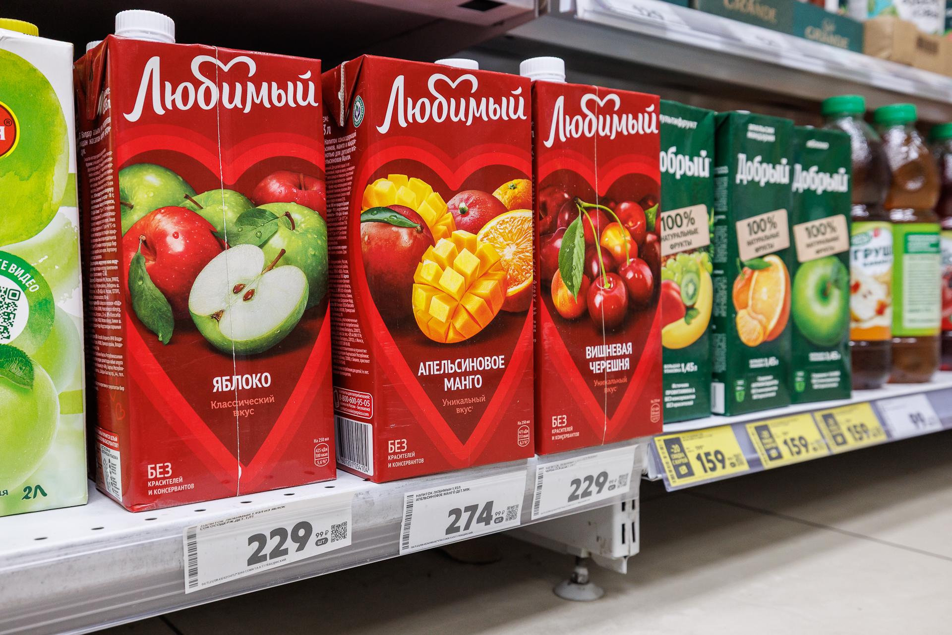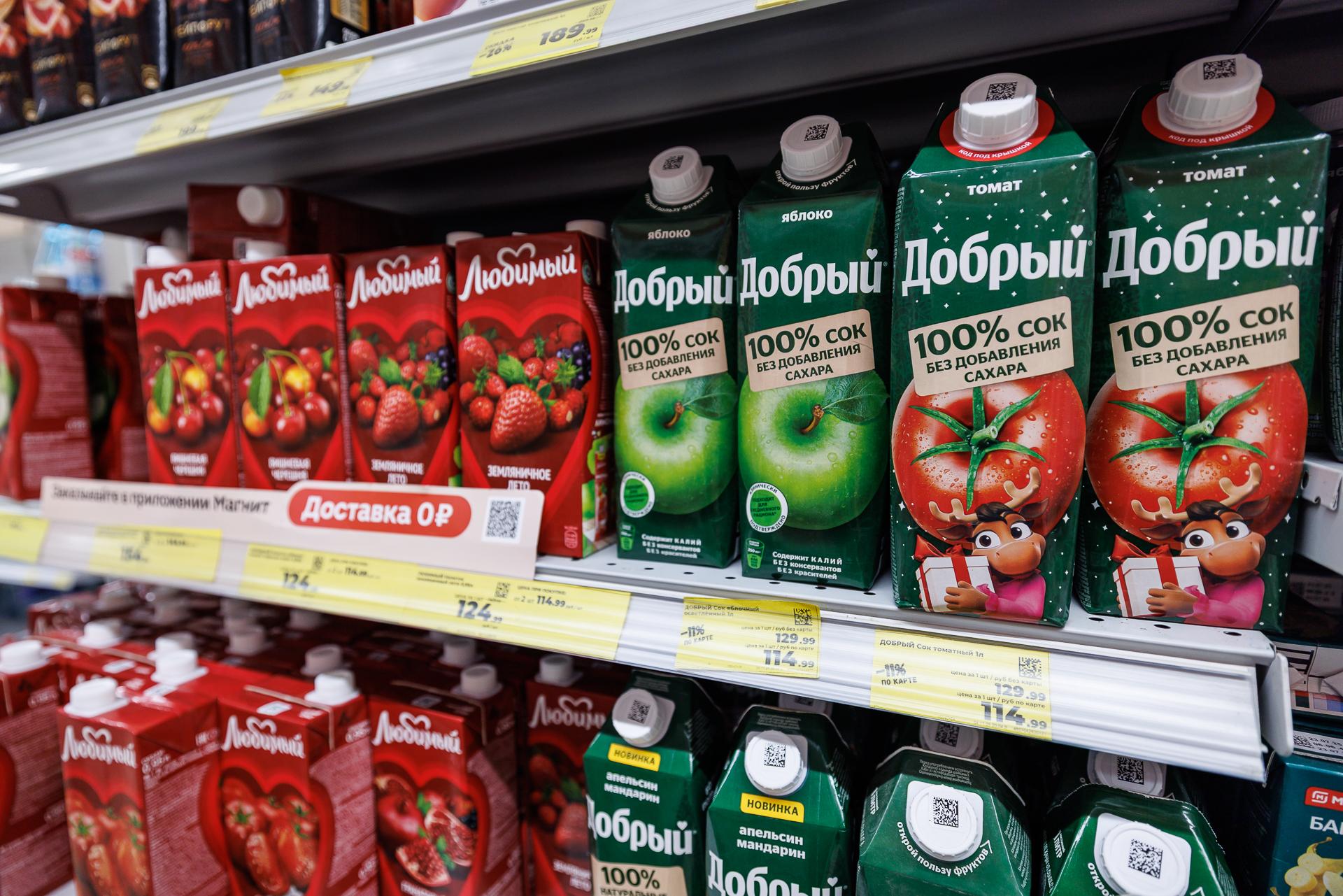 Ассортимент соков в магазине «Магнит»