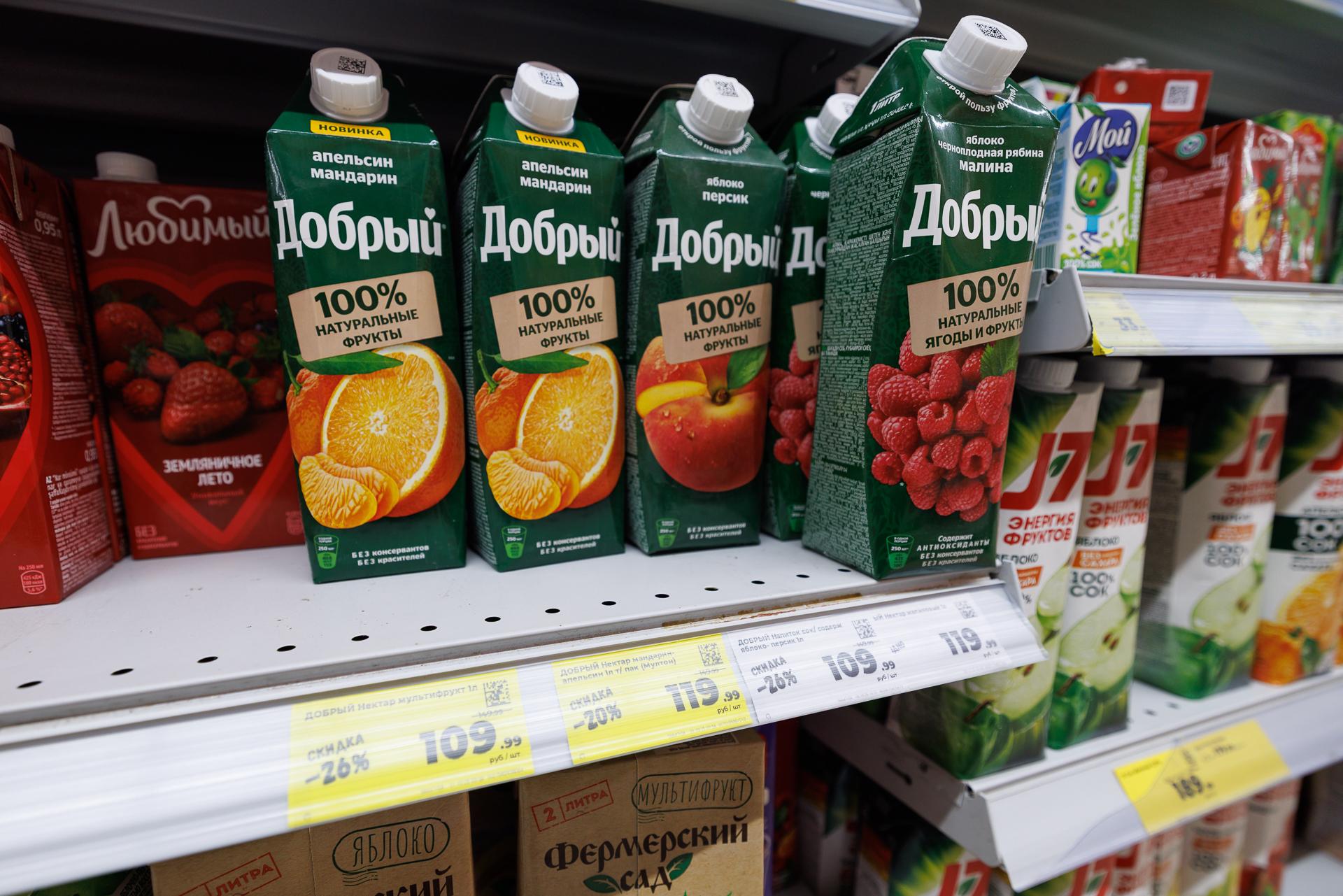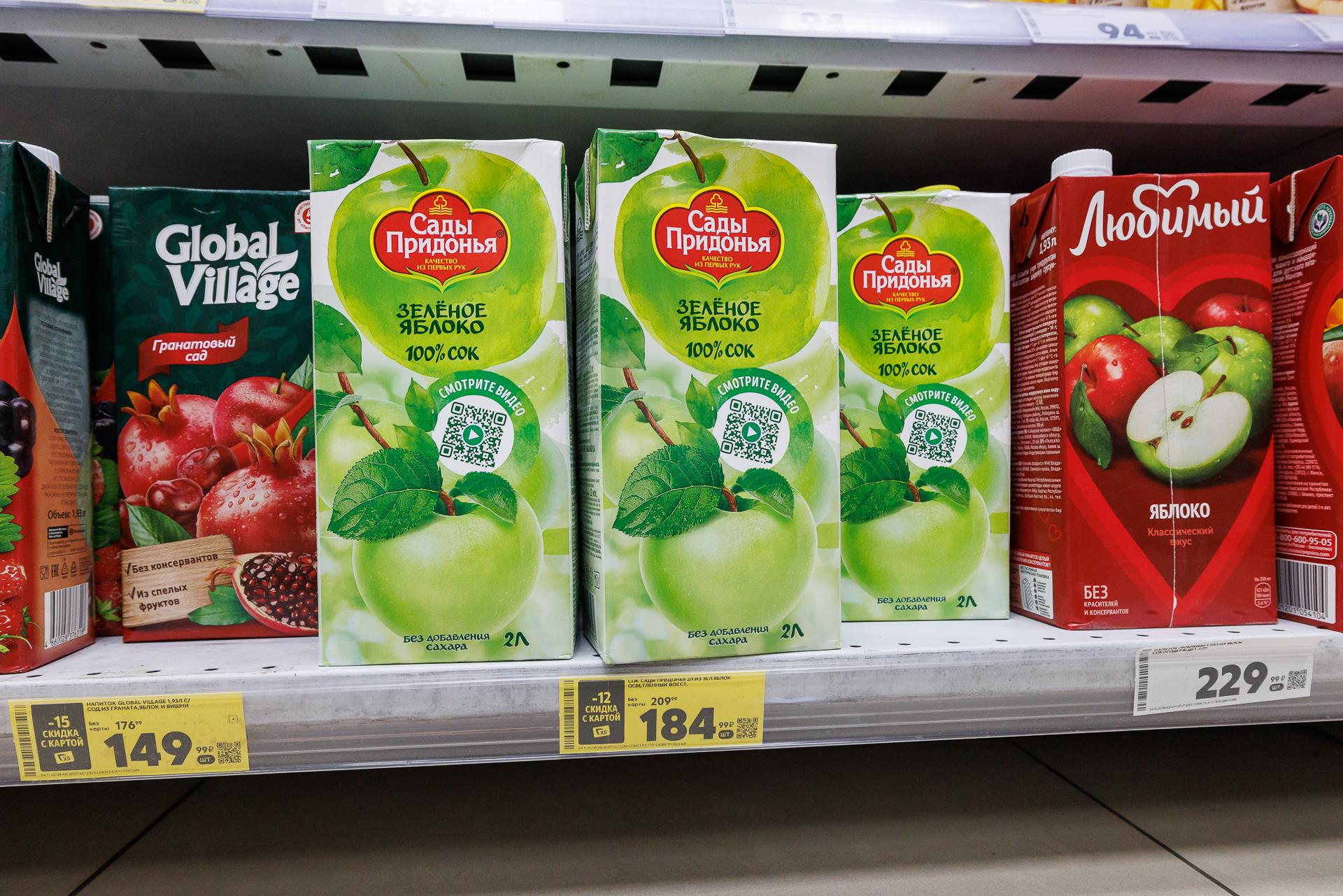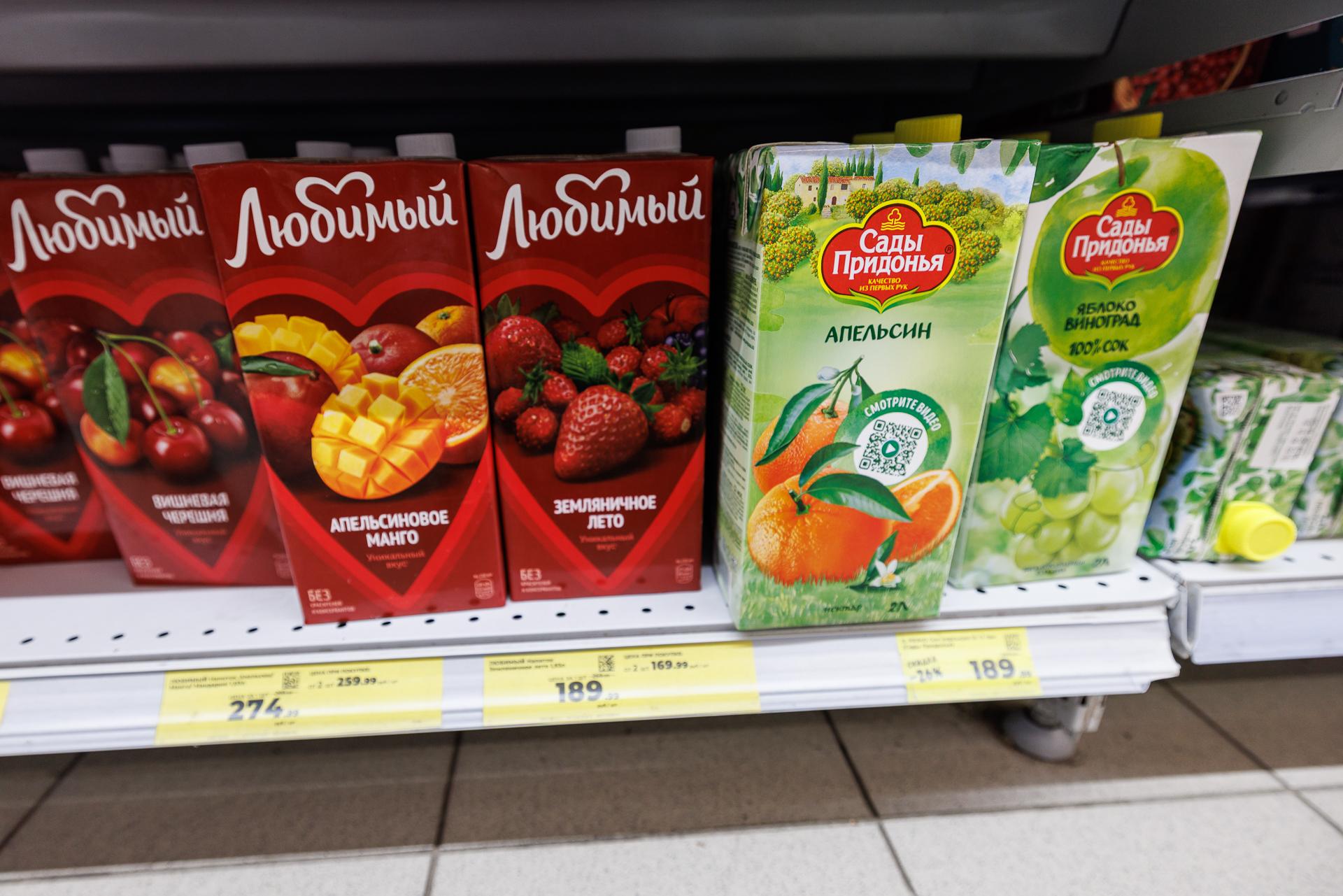 Ассортимент соков в магазине «Магнит»