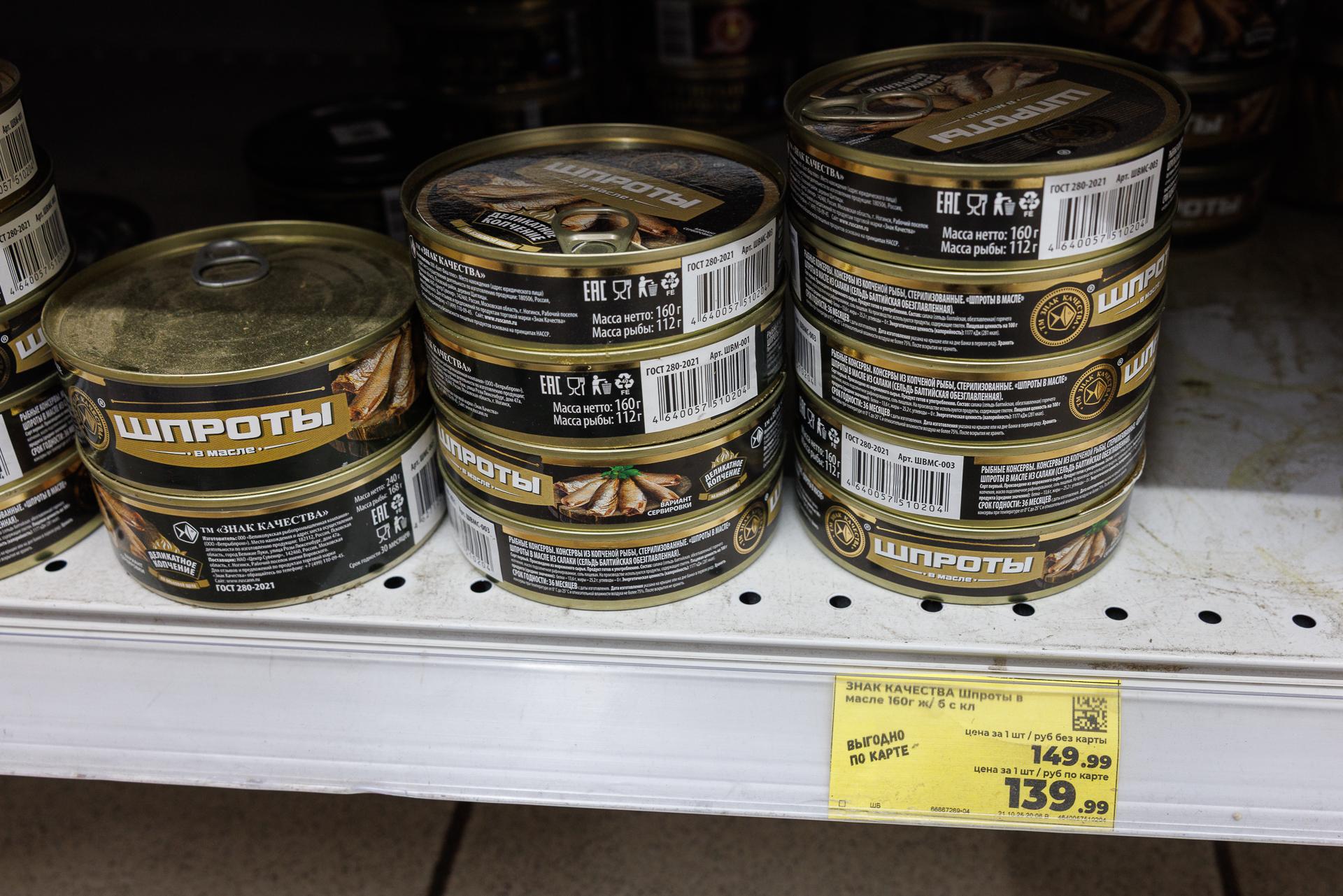 В ноябре банку шпрот можно было купить за 190 рублей, а упаковку меньшего объёма — за 150.