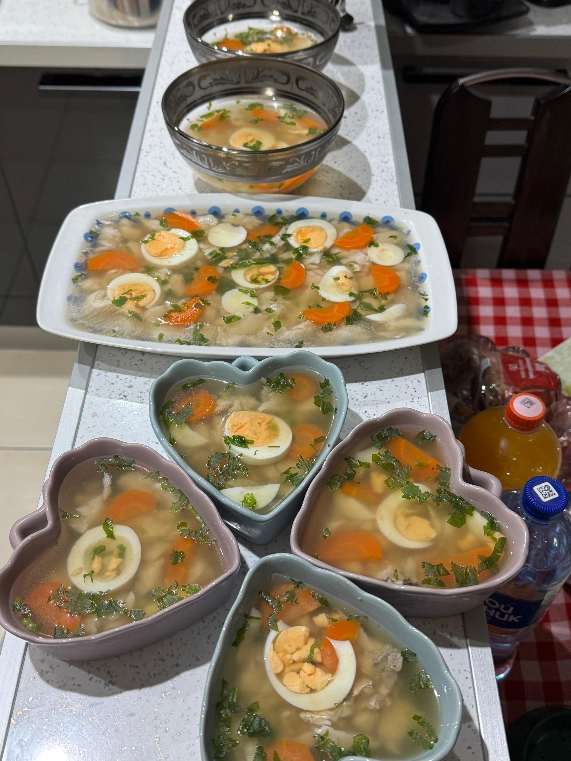 «Рыбу нужно разрезать пополам и уложить в кастрюлю, добавив лук и морковь. Воды наливают ровно столько, чтобы она слегка покрыла содержимое. Доведите до кипения, снимая пену, посолите, добавьте душистый перец и лавровый лист. После закипания убавьте огонь до минимума, накройте крышкой и оставьте вариться на 45–60 минут, — поясняет Николай Ефремов. — Пока варится рыба, отварите яйца, остудите и нарежьте их колечками. В стакане кипячёной воды разведите 1,5 чайные ложки желатина, перемешайте и дайте постоять».