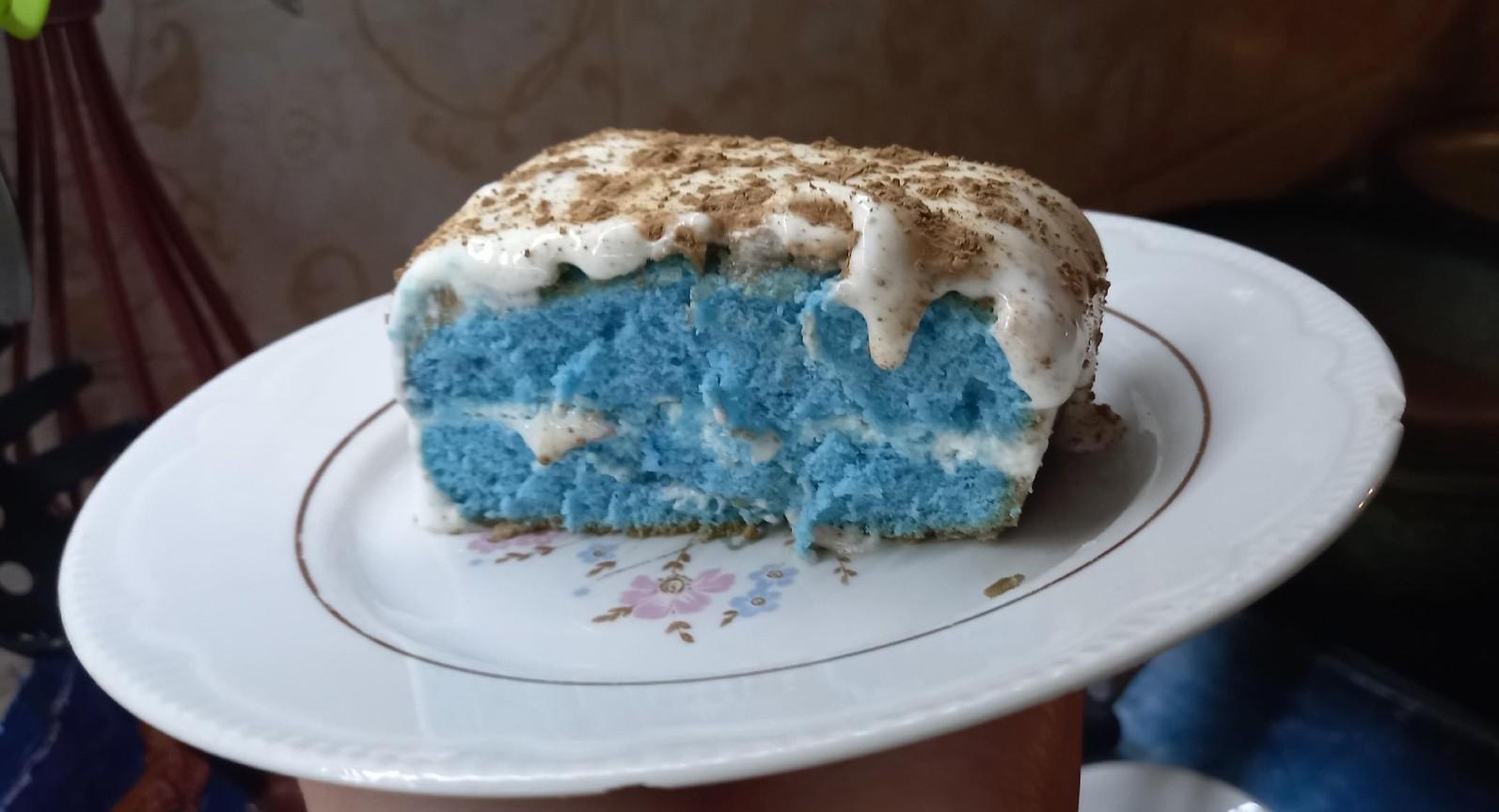 «Я обычно не церемонюсь, — рассказывает Весения. — Для коржей хорошо взбиваю яйца с сахаром, а потом добавляю все остальное до однородной массы. Мой любимый пищевой краситель — синий, его добавляю для яркости. Форму предпочитаю смазывать сливочным маслом, так нежнее. Далее — на 180 градусов в духовку. Уже через 10 минут тыкаю зубочисткой, чтобы проверить, насколько корж запекся. Сильно тесто подниматься не будет».