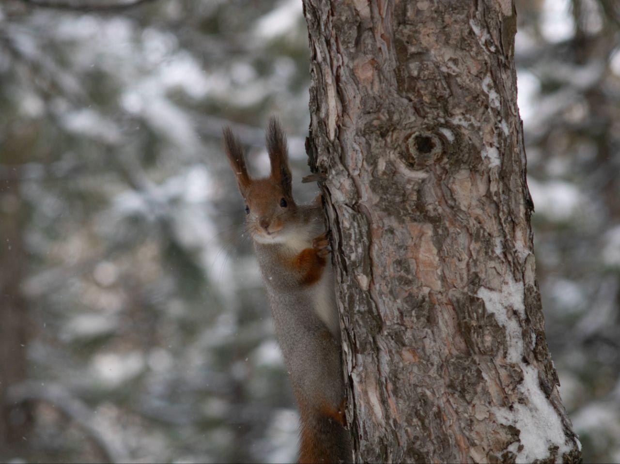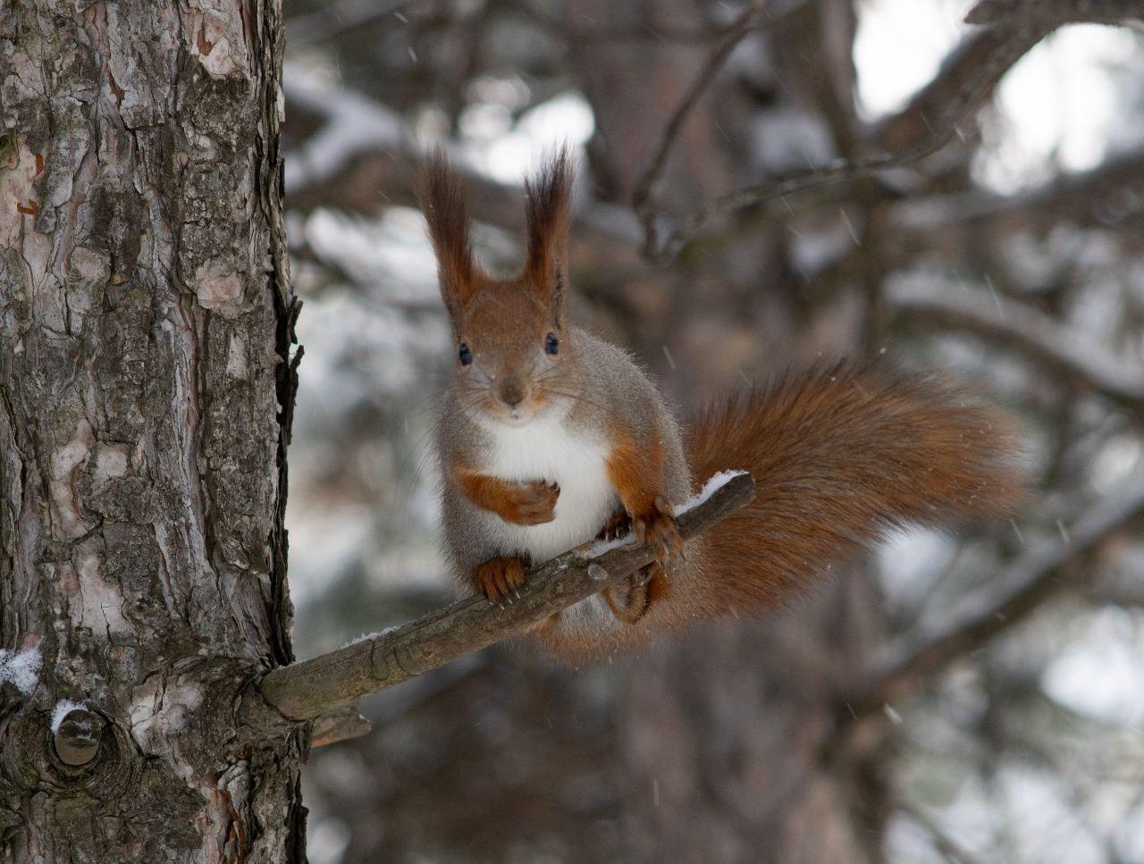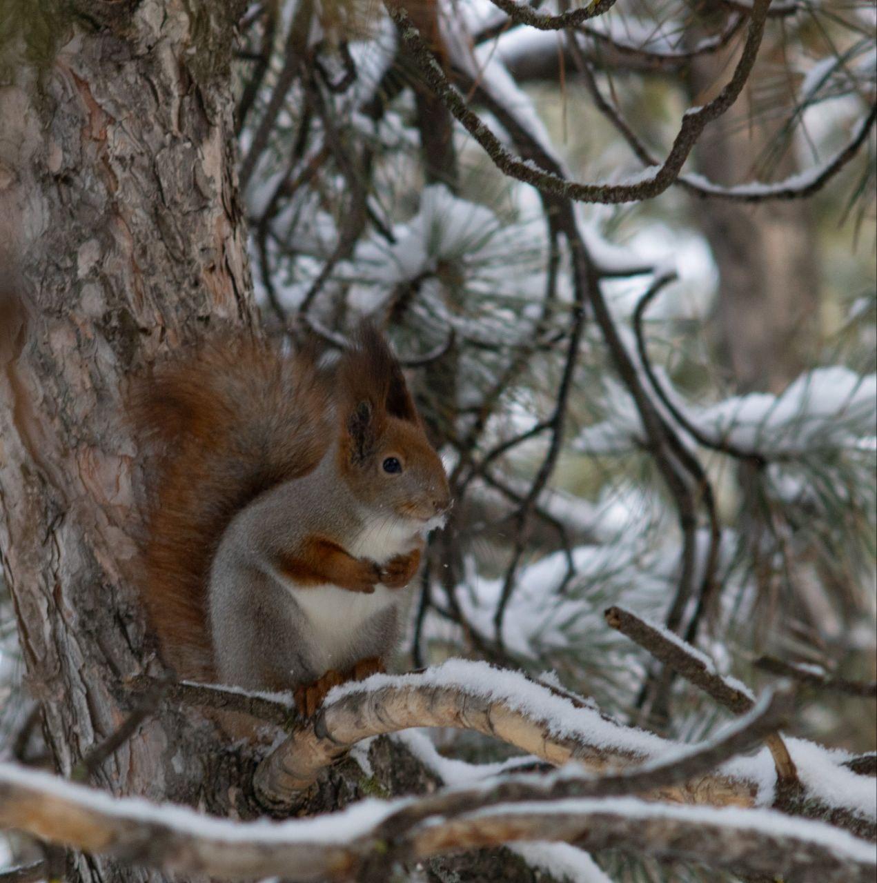 Морозным вечером фотограф запечатлел обитателей Мамаева кургана, включая белок и птиц.