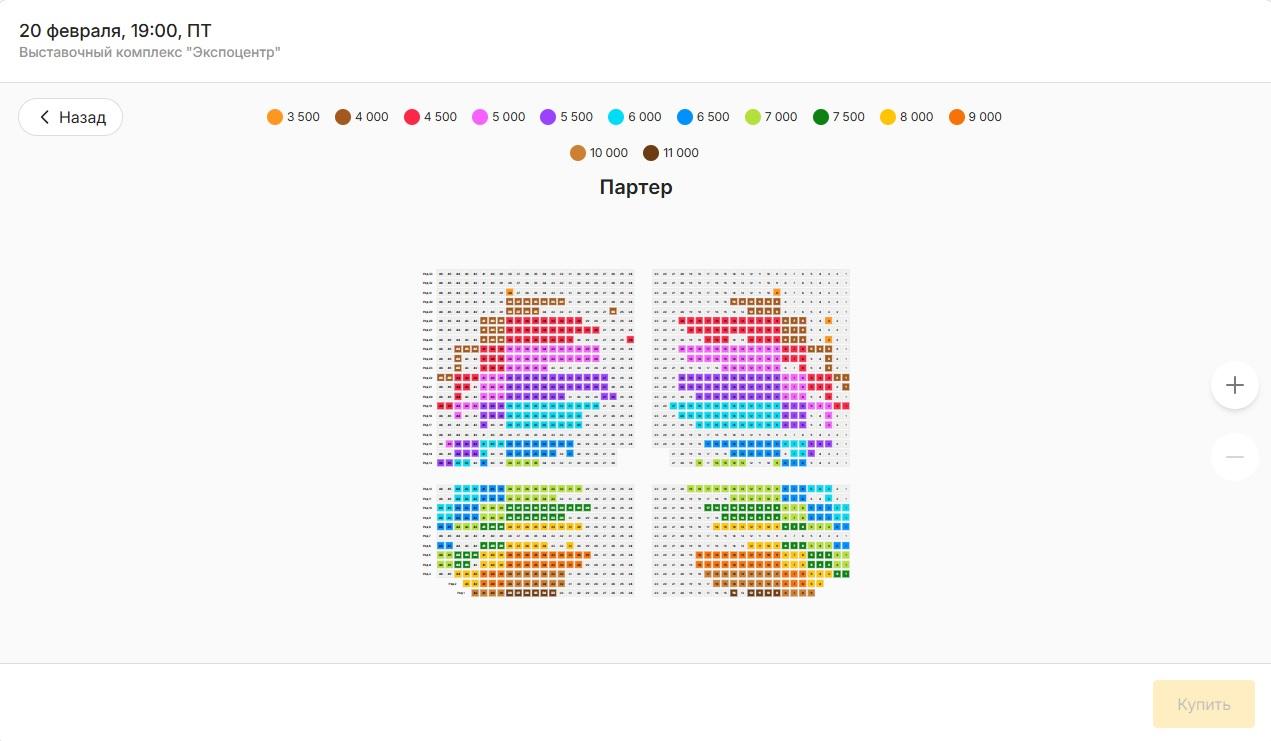 Цены на оставшиеся места варьируются от 3500 до 11000 рублей. Билетов по минимальной стоимости осталось всего четыре.