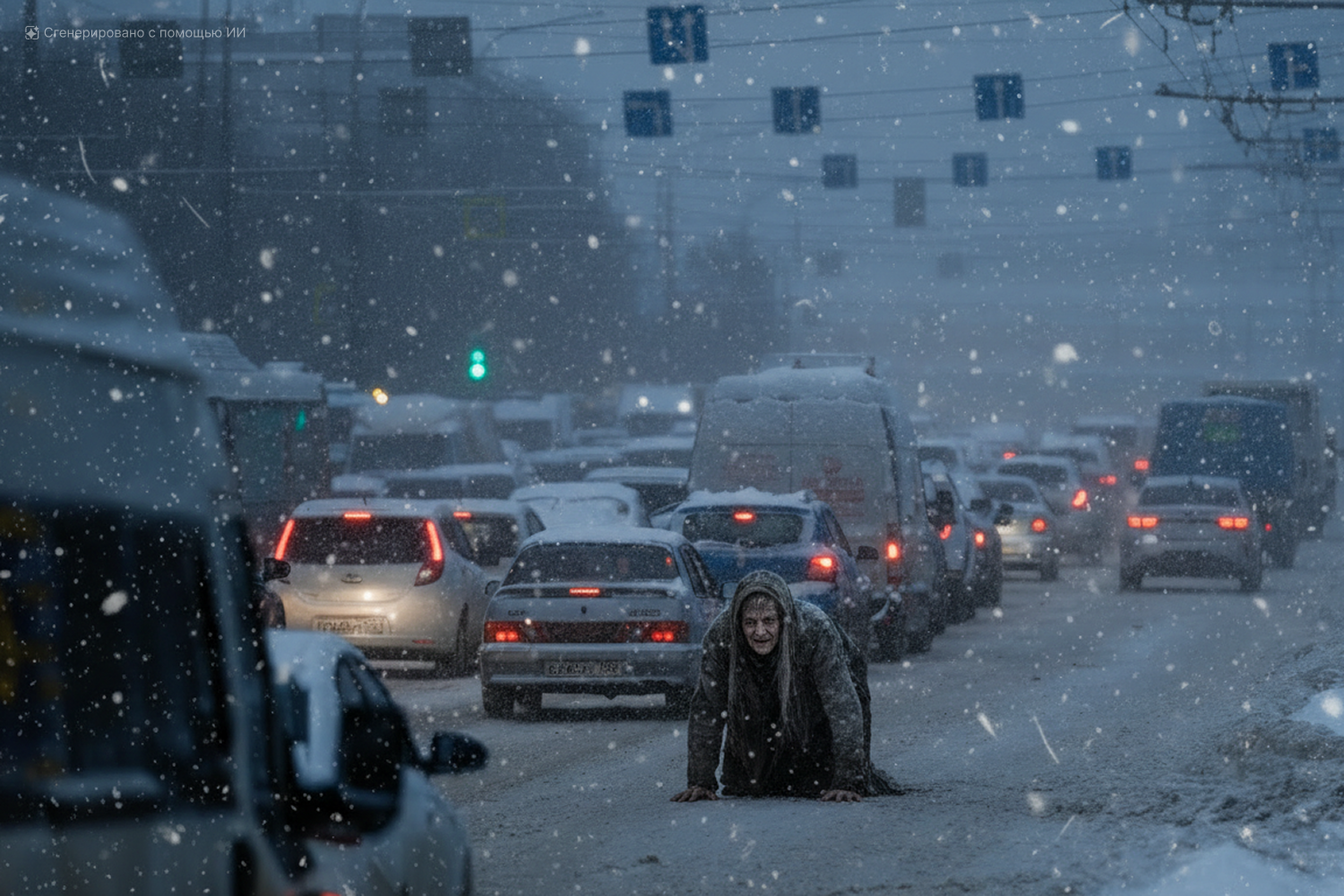 Эта легенда была искусственно создана исследователями фольклора. Около десяти лет назад водители стали сообщать о существе, которое передвигается на четвереньках по дорогам Волгограда. При свете фар оно оказывалось старой женщиной со светящимися глазами, с нечеловеческой скоростью убегающей от машин.