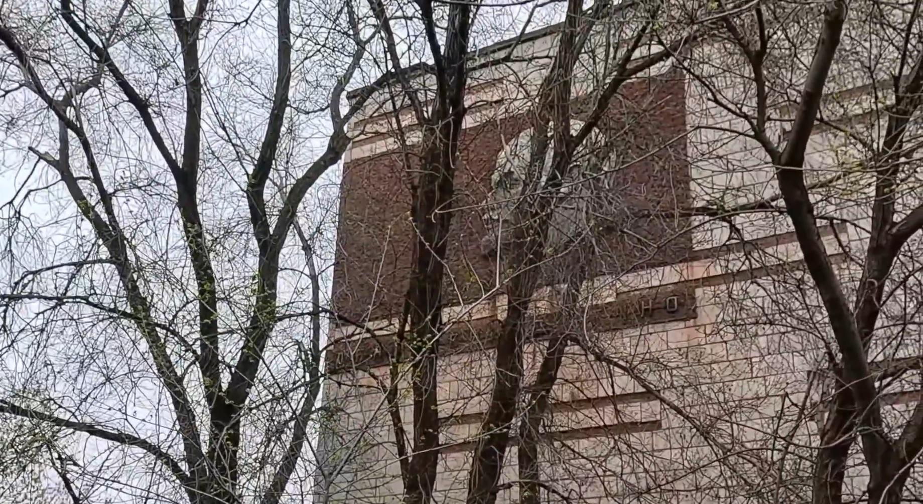 Ролик начинается с исторических кадров Сталинградской битвы, а затем переходит к серой пятиэтажке на улице Лазоревой, 223. Первое, что привлекло внимание блогера, — профиль Владимира Ленина на фасаде.