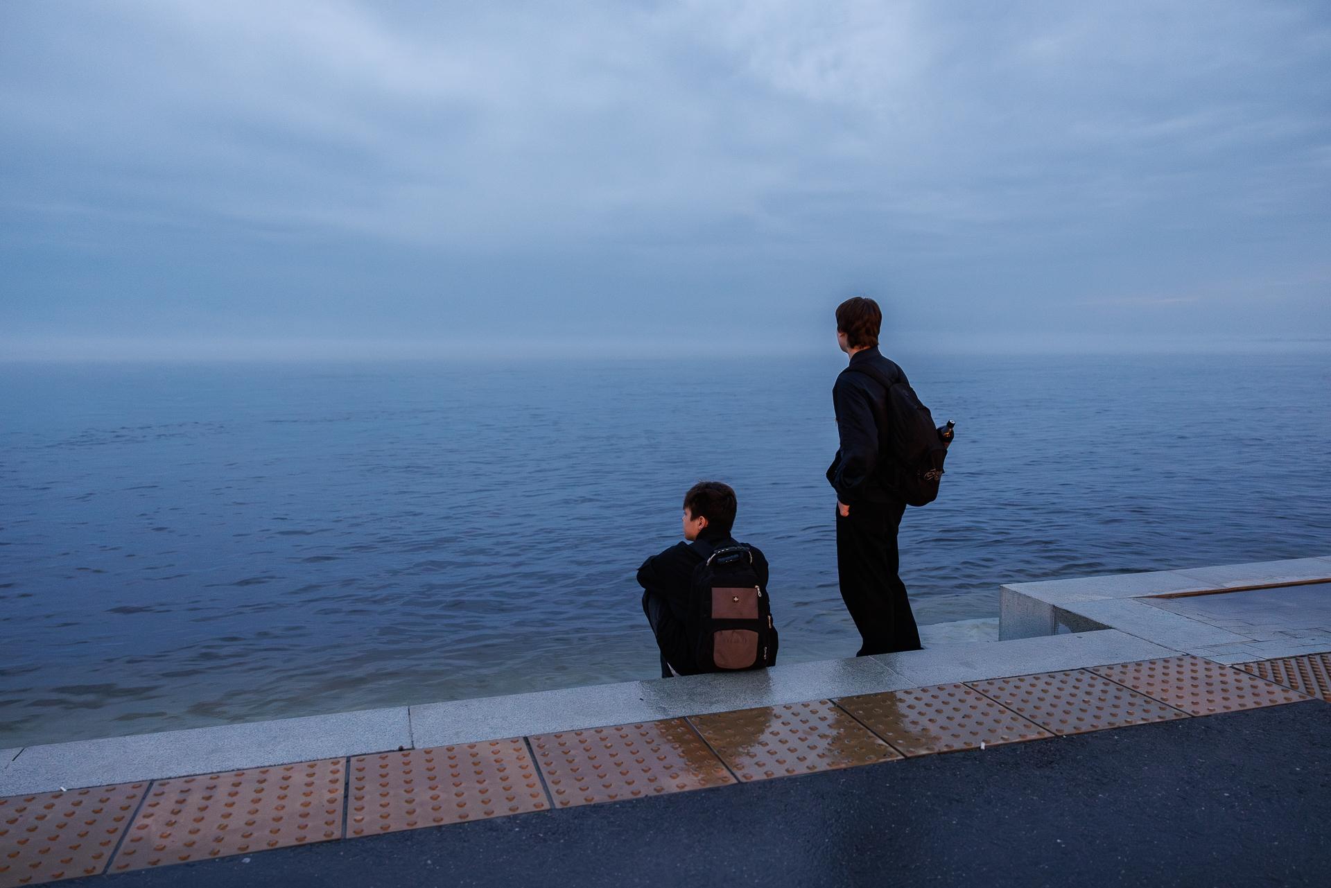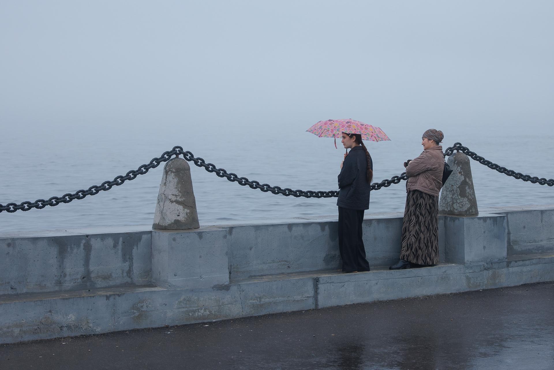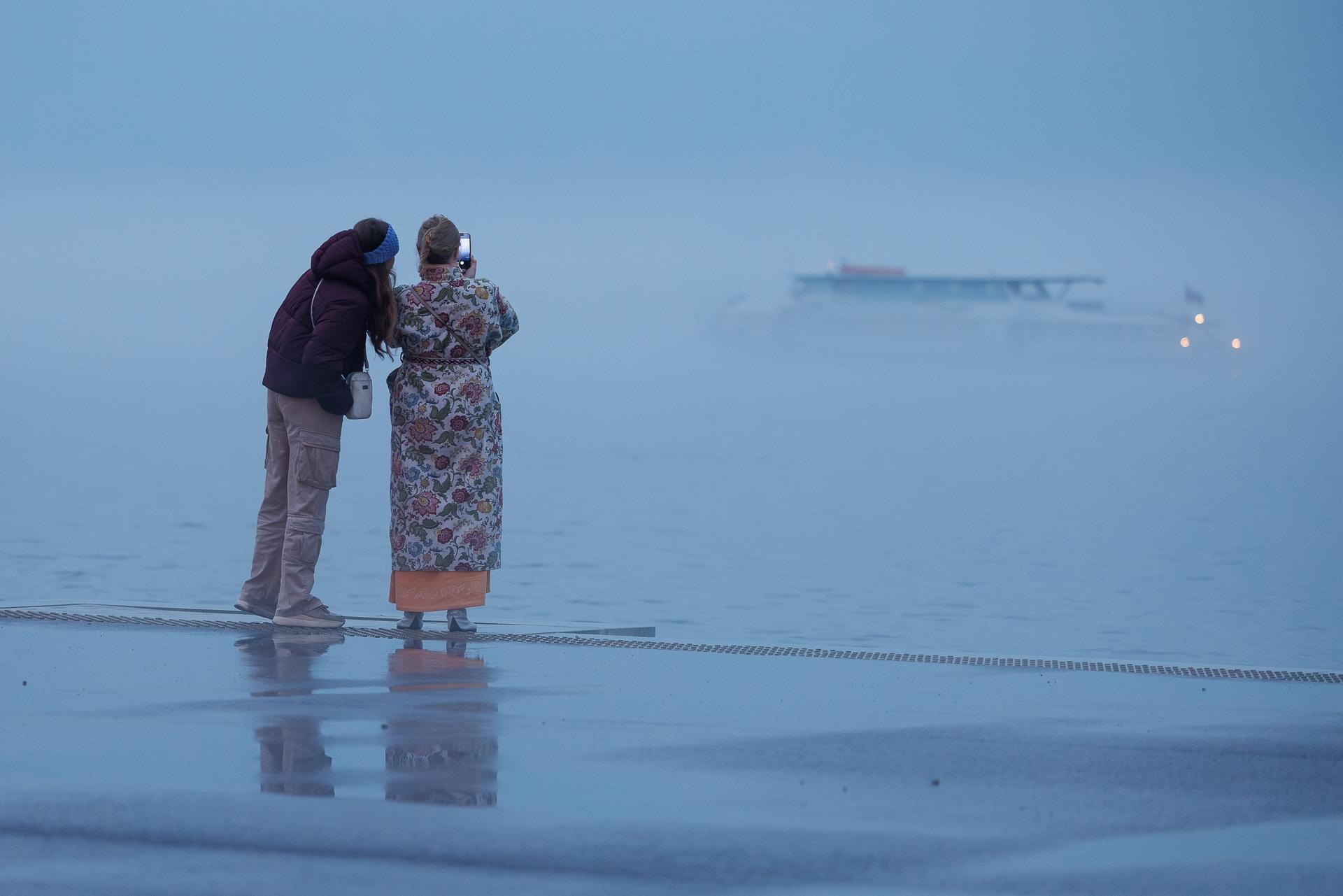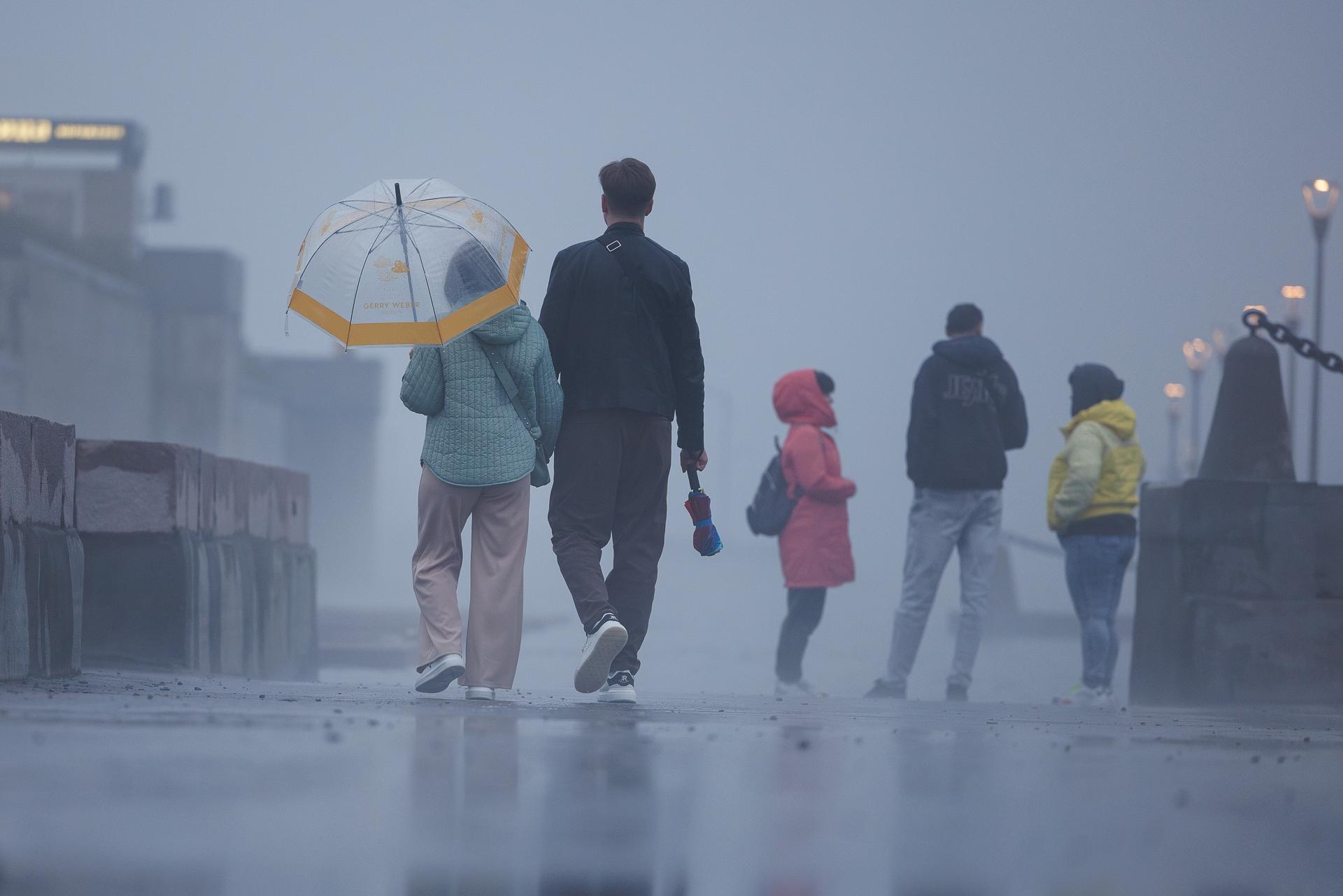 Несмотря на плохую погоду, на набережной собралось много людей.