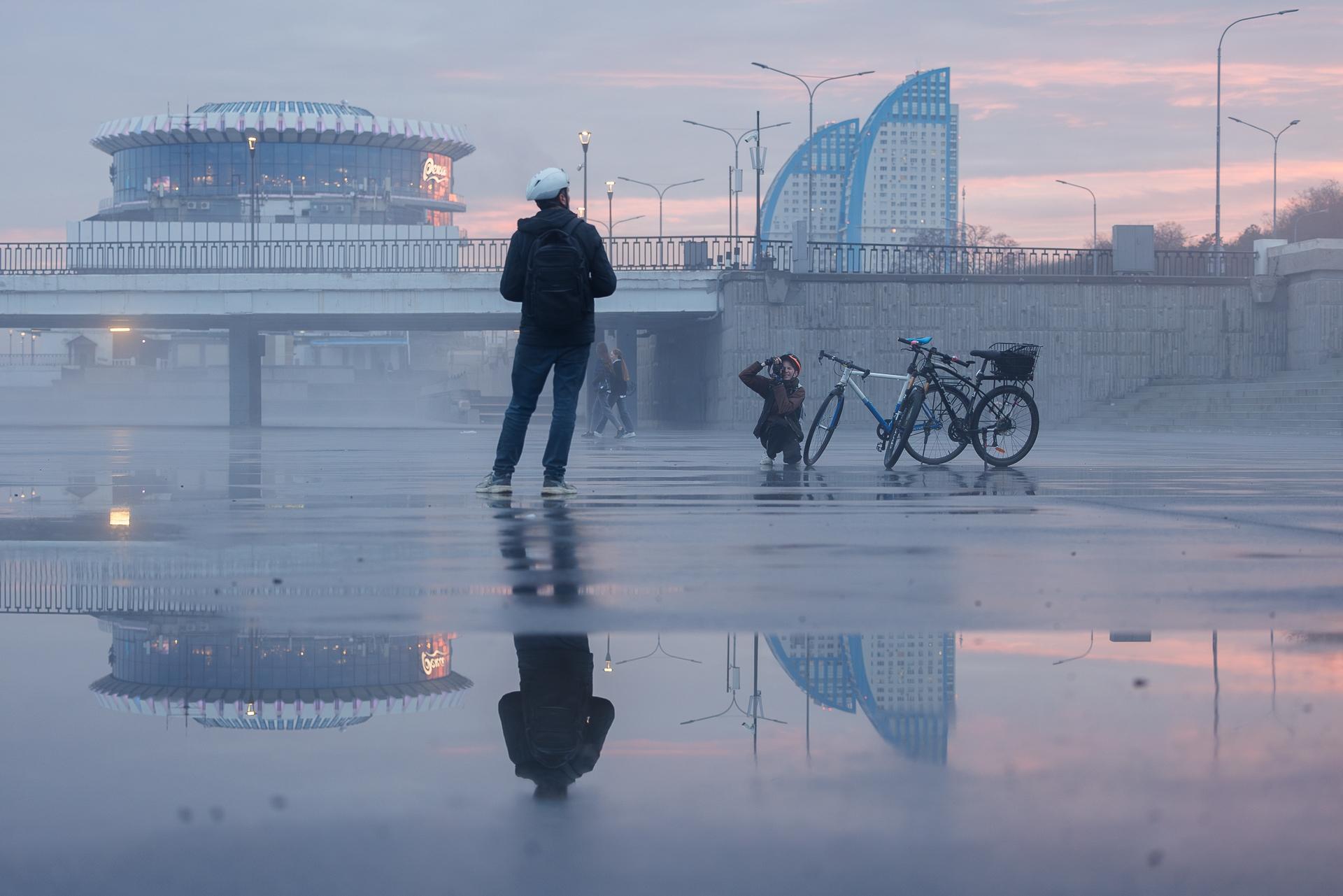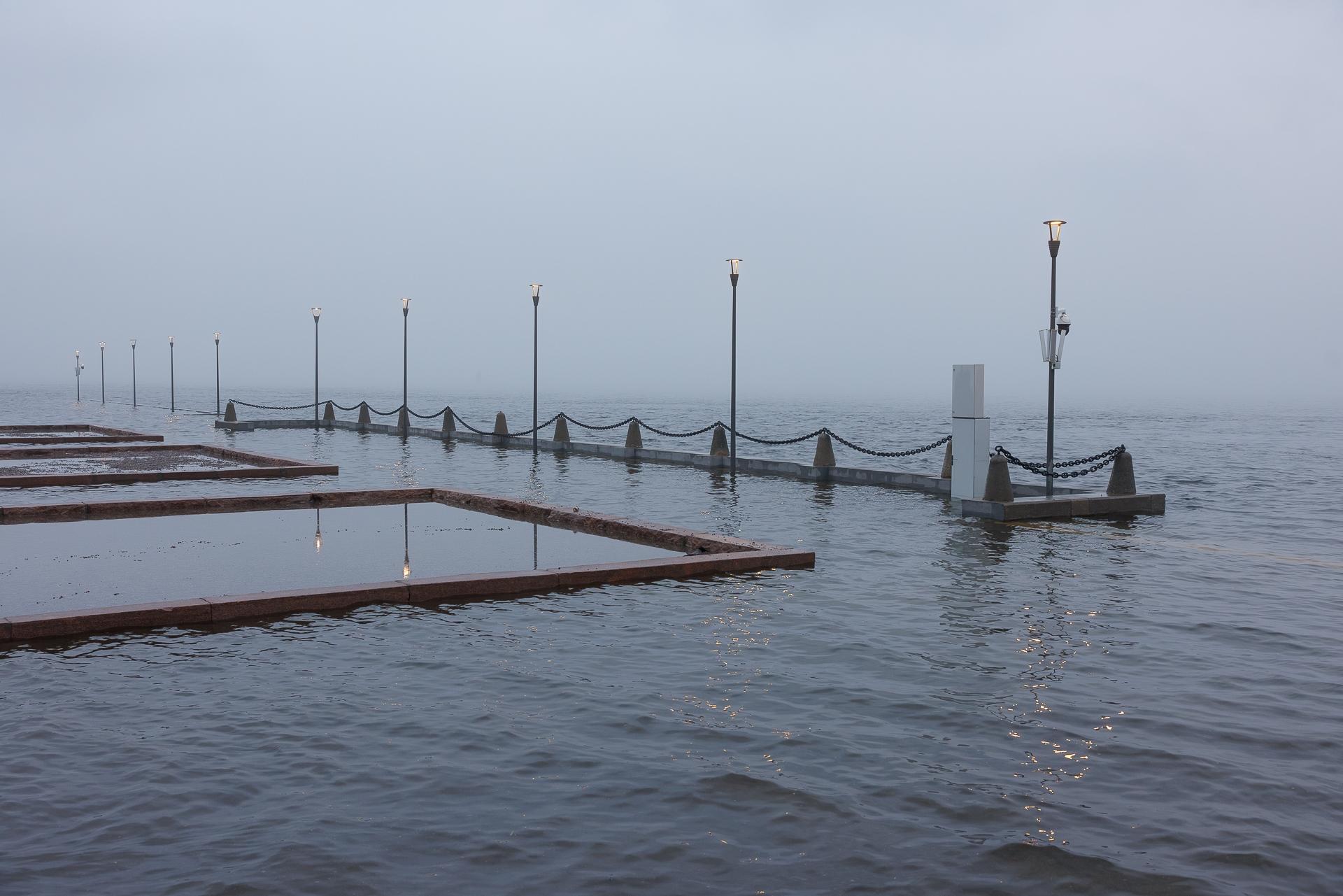Сложно разграничить, где заканчивается асфальт, начинается вода и лежит линия горизонта.
