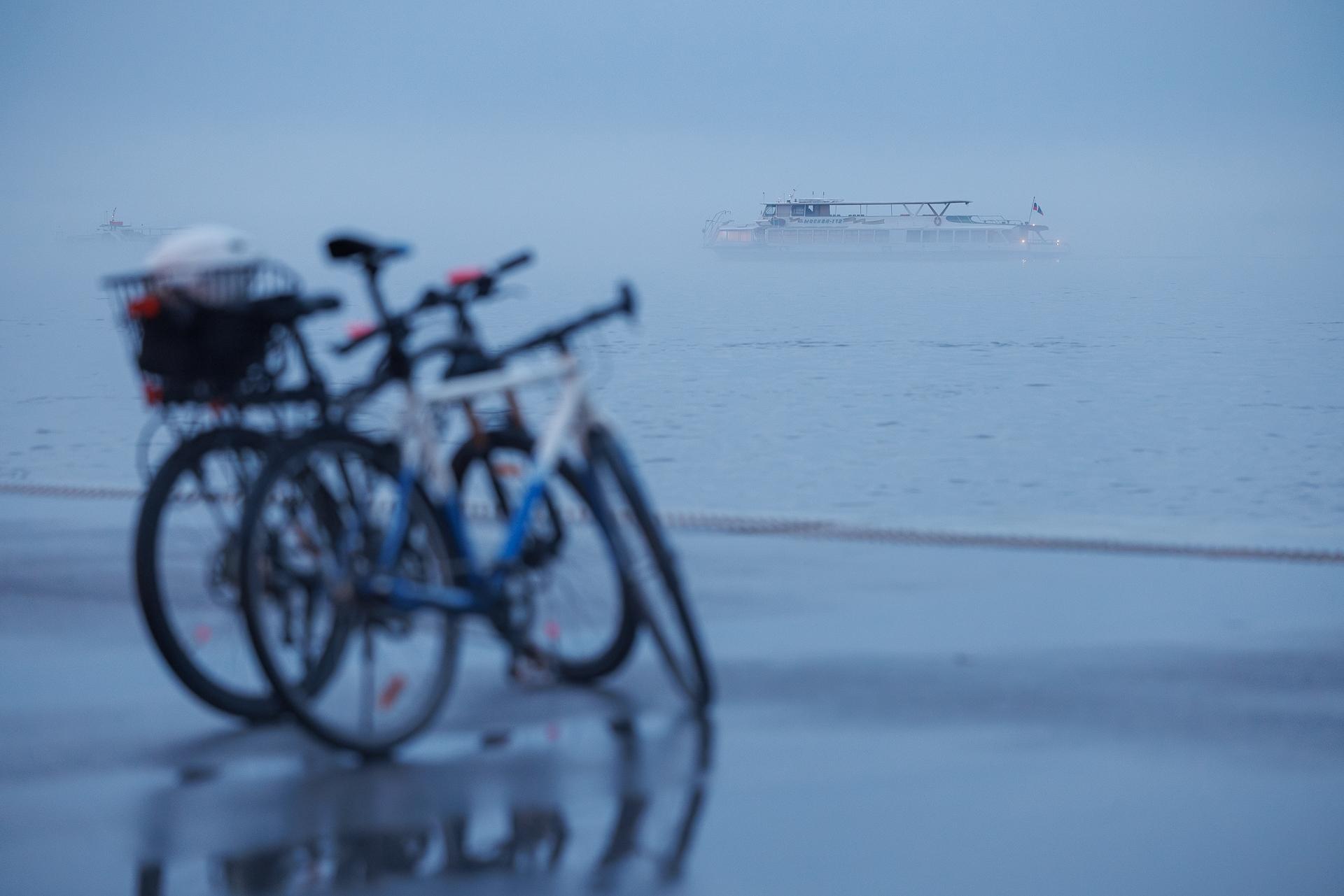 Туман почти скрыл очертания теплохода.