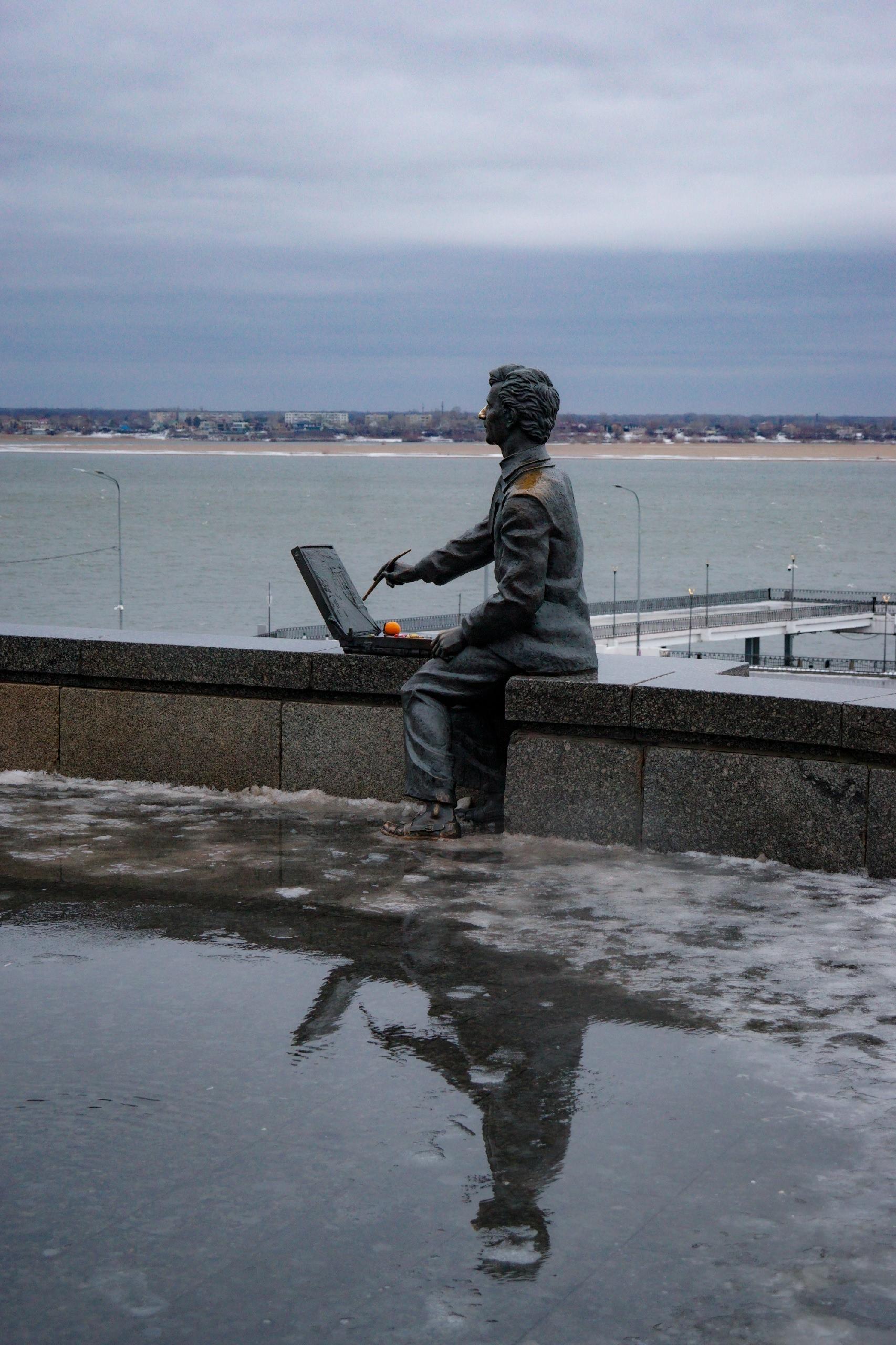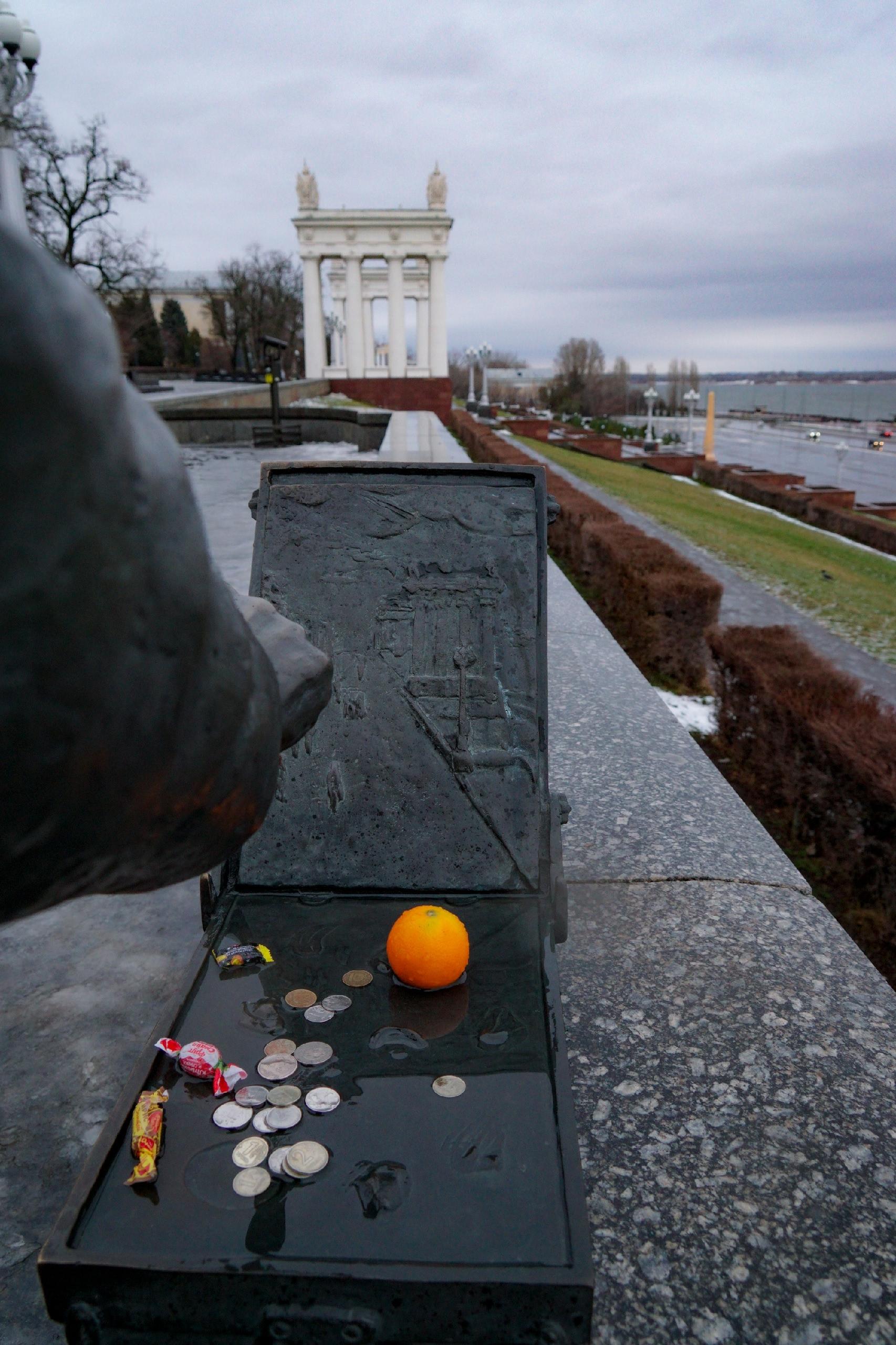 «В этом году традиционный рассвет выдался смазанным. Свинцовое небо не оставило шанса солнечному диску взойти над Волгой. Было ощущение, будто кто-то просто плавно добавляет мощность на гигантском люминесцентном светильнике, — рассказывает Дмитрий Доценков. — Но радует, что я не один такой на набережной ни свет ни заря. Кроме вечных собачников, художник Лосев уже вовсю писал портрет ротонды в этом призрачном свете. Говорит, тоже рассчитывал на лучи, но — как есть. Заметил интересную деталь: на его палитру зрители кладут „дары“ — конфеты, фрукты, монетки. Не знаю, что это значит, но, на всякий случай, тоже оставил рубль на удачу. А вдруг?»