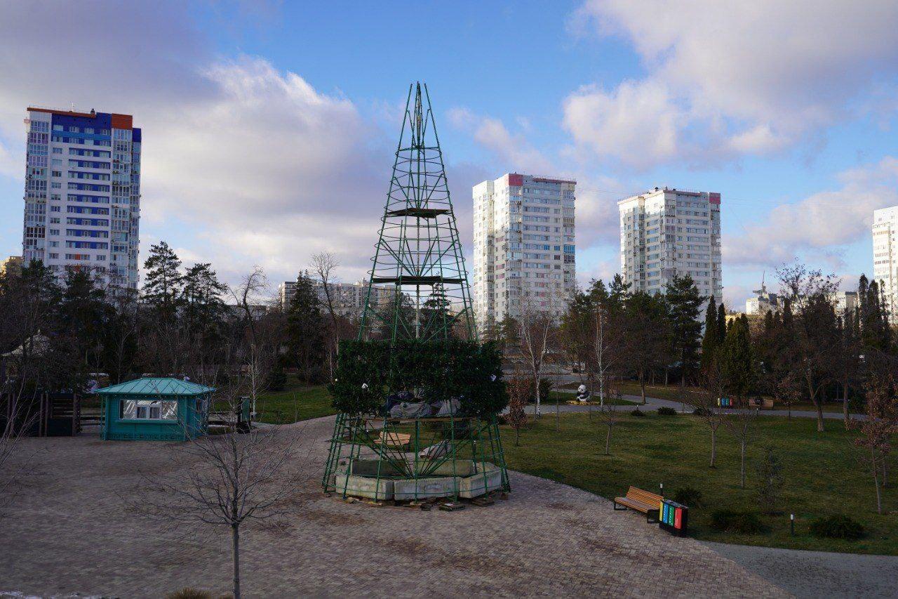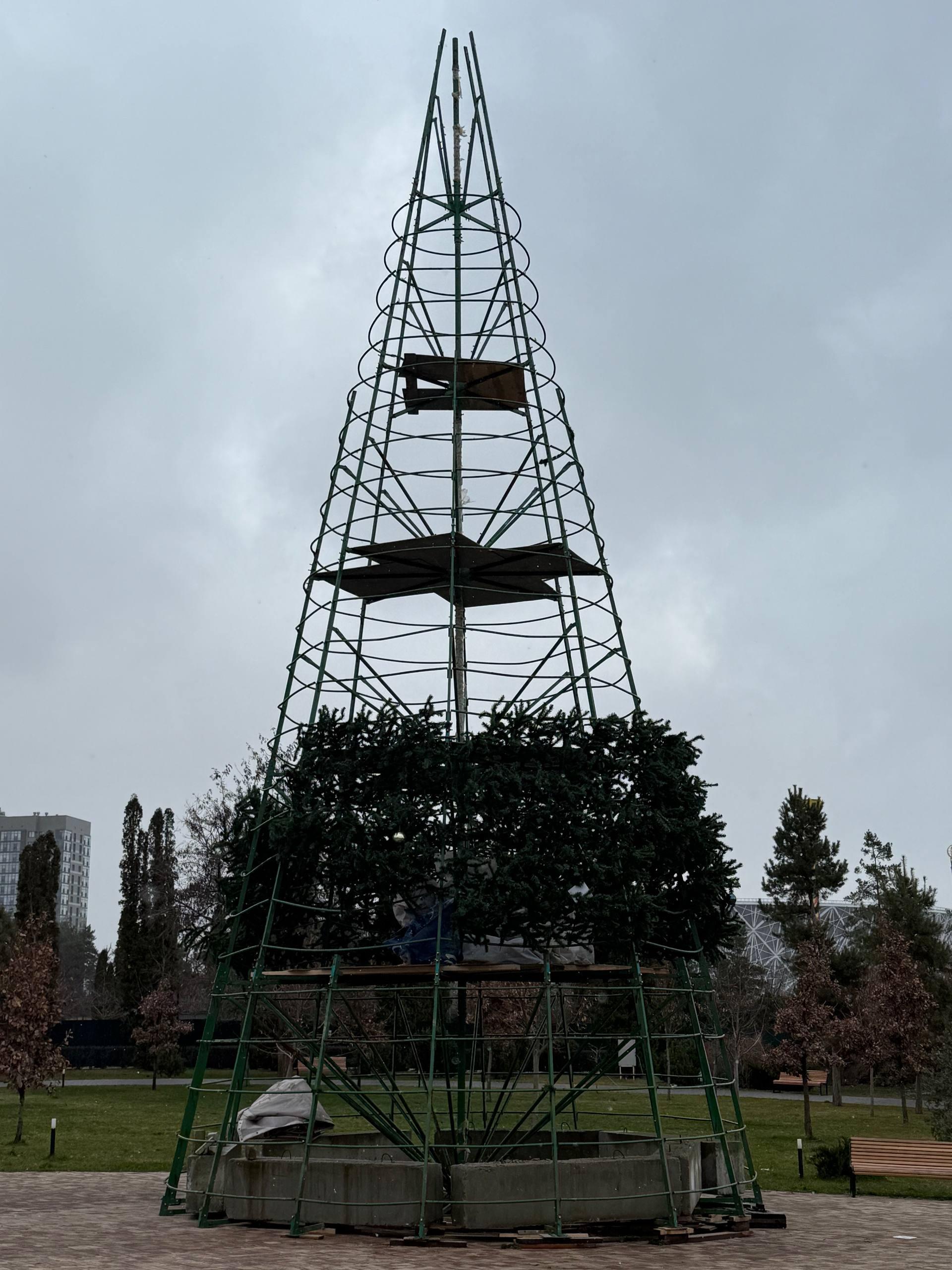 Администрация ЦПКиО сообщила о ходе работ: «На площади у главной сцены завершили сборку каркаса и приступили к его украшению зелёными ветвями. В новогоднюю ночь здесь запланирована праздничная программа. Для оформления символа года используют более 1600 веток, около 450 разноцветных шаров, гирлянды и звезду на вершине».
