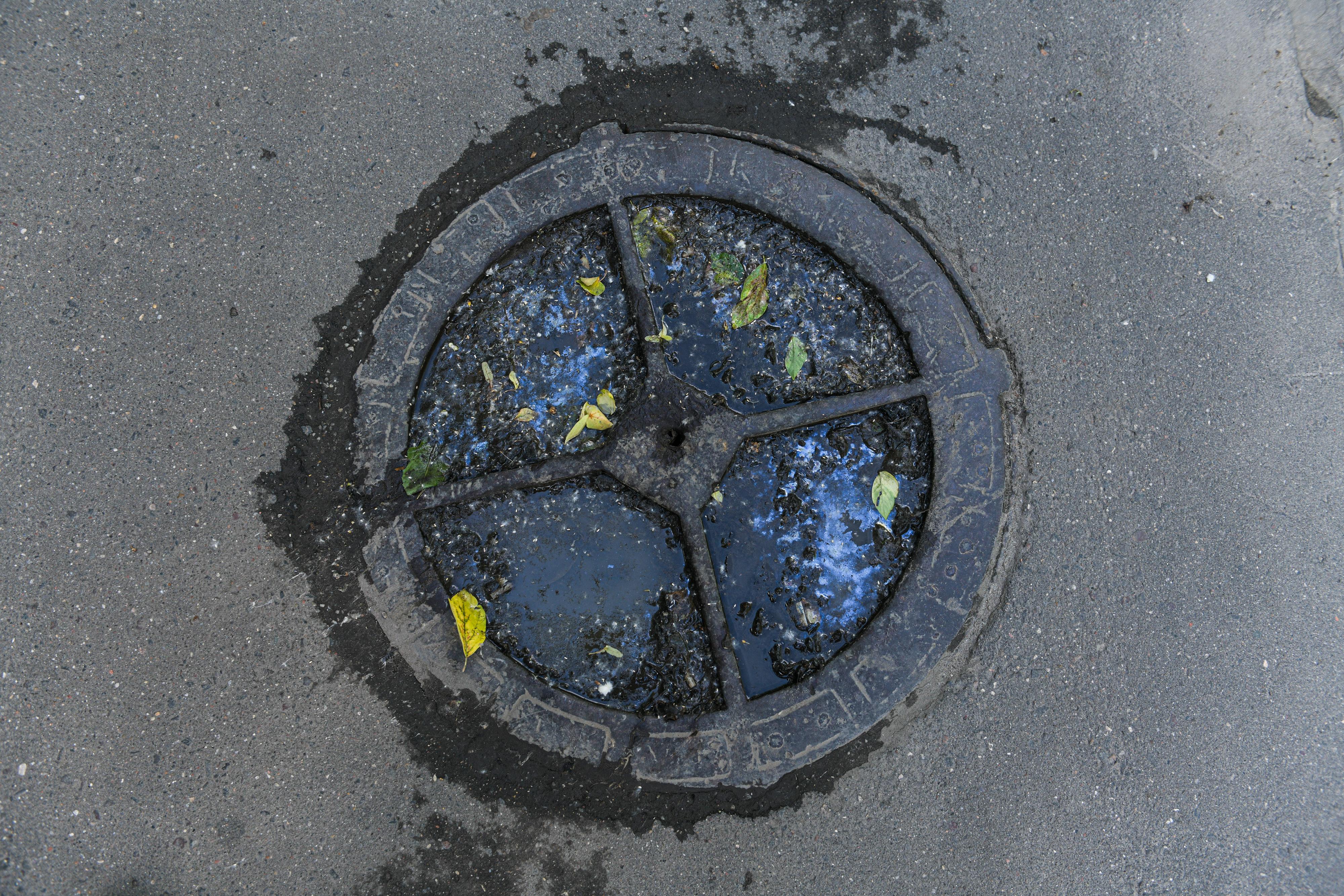 Автомобиль, припаркованный на канализационном люке, блокирует доступ для проведения аварийных работ.