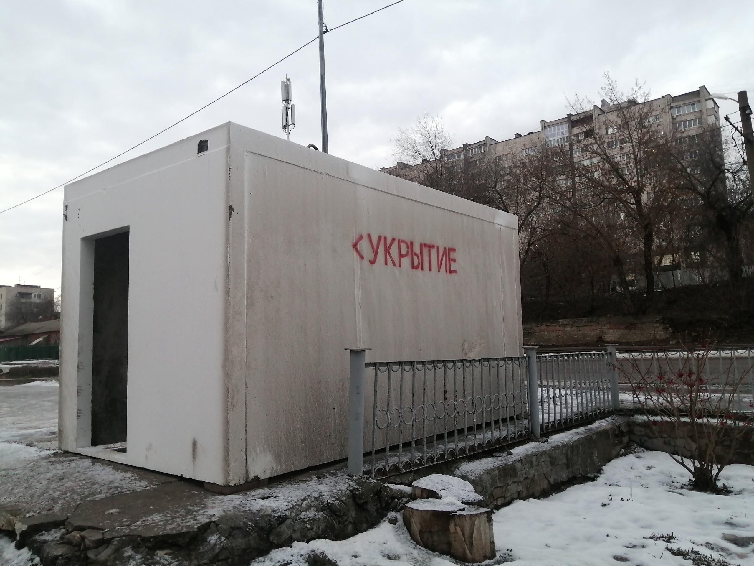 Впервые эти конструкции заметили на станциях Волгоград-2 и Красноармейской во время новогодних праздников. Укрытия выполнены в виде бетонных коробов белого цвета с яркой красной надписью «укрытие». Площадь каждого сооружения составляет от шести до девяти квадратных метров, вход не ограничен. Стоимость установки не разглашается, а сотрудники вокзалов запрещали фотографировать объекты, ссылаясь на режим секретности.