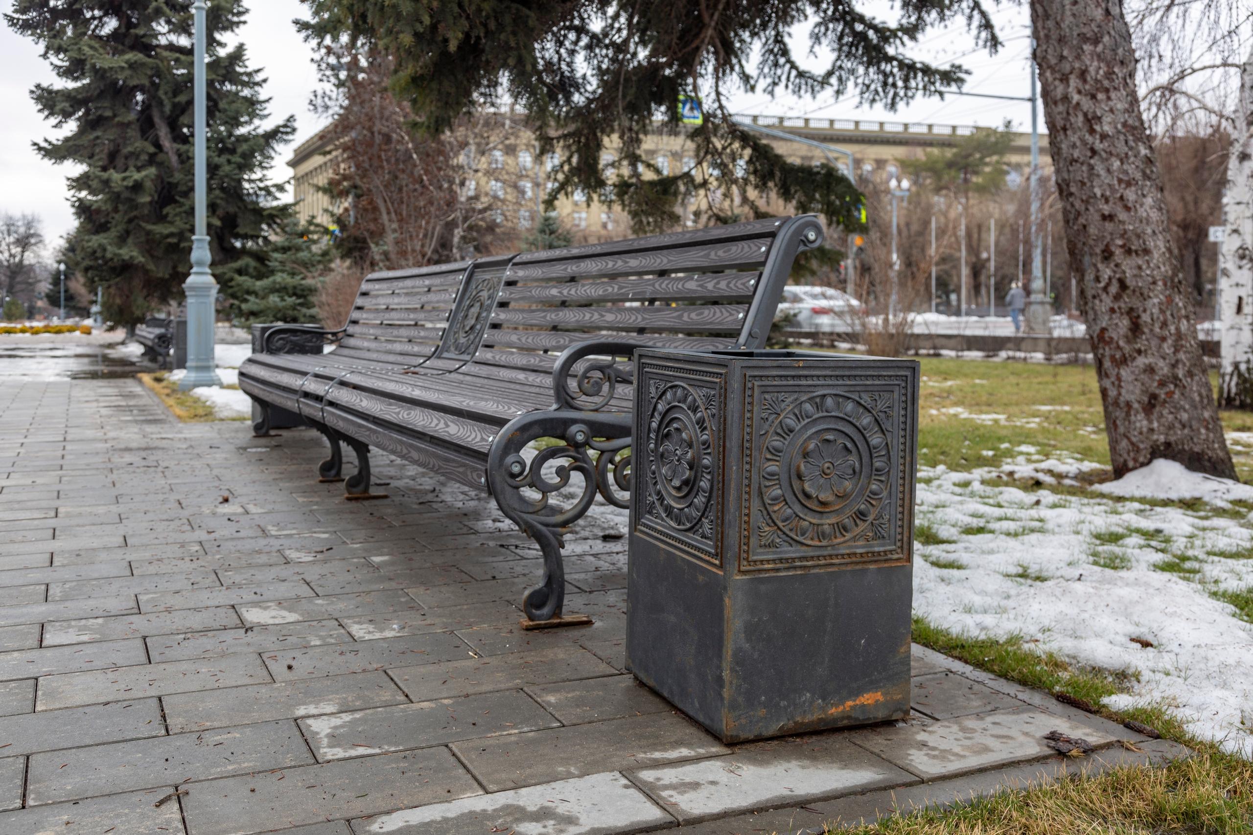 Новые лавочки и фонари на Аллее Героев заржавели в Волгограде