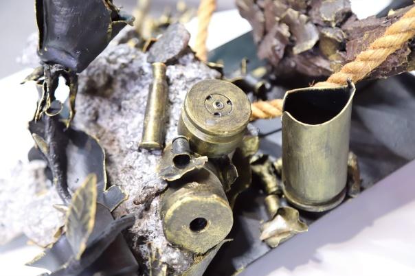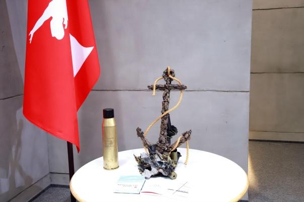 Арт-объект в форме якоря создан из собранных на месте боев осколков.