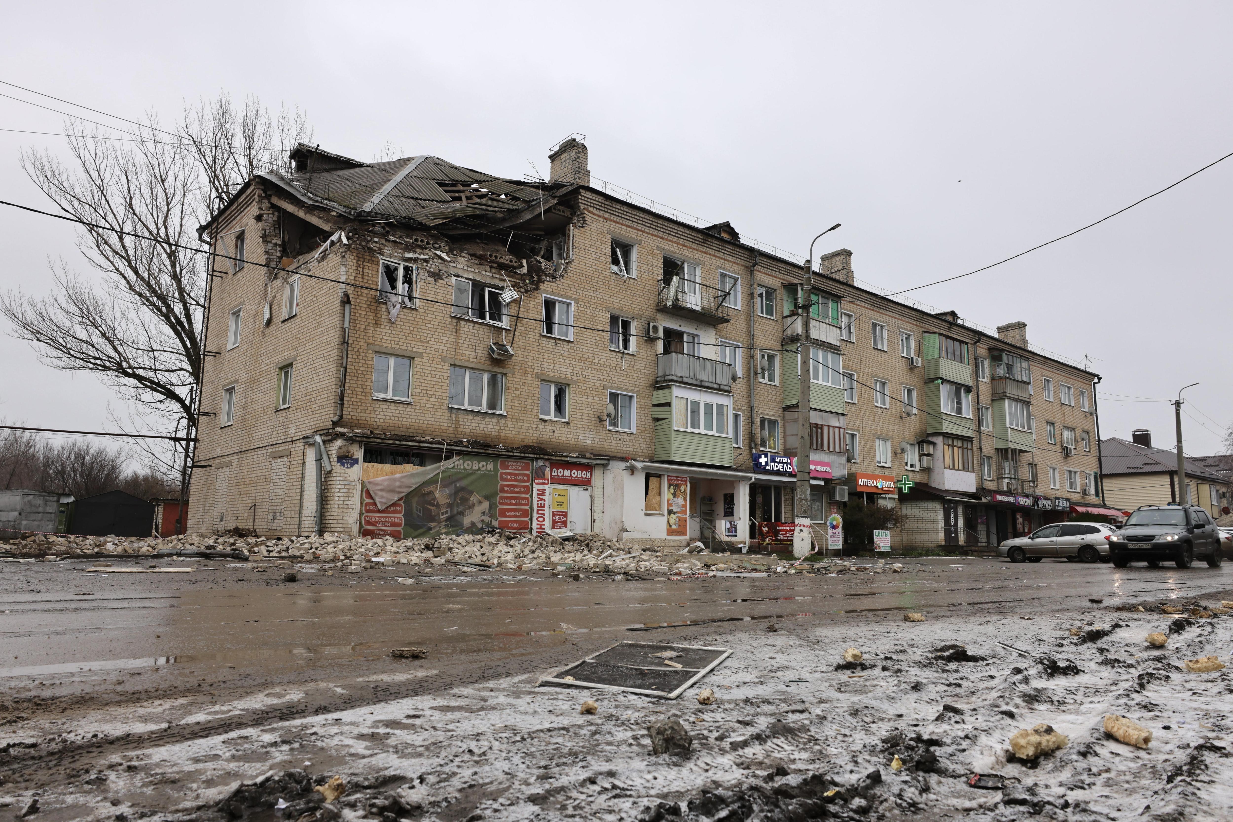 «Пострадали больше всего квартиры на четвертом этаже. Второй подъезд пострадал меньше. Первый подъезд, самый удаленный, никак не пострадал. Жители услышали хлопок, у кого-то от ударной волны магниты с холодильника посыпались, затряслось все, — говорит Денис Гусаков. — Один из хозяйственных магазинов закрыт, вход в него завален кирпичом. Заведения остальные — аптека, цветы, пункт выдачи — работают в штатном режиме».