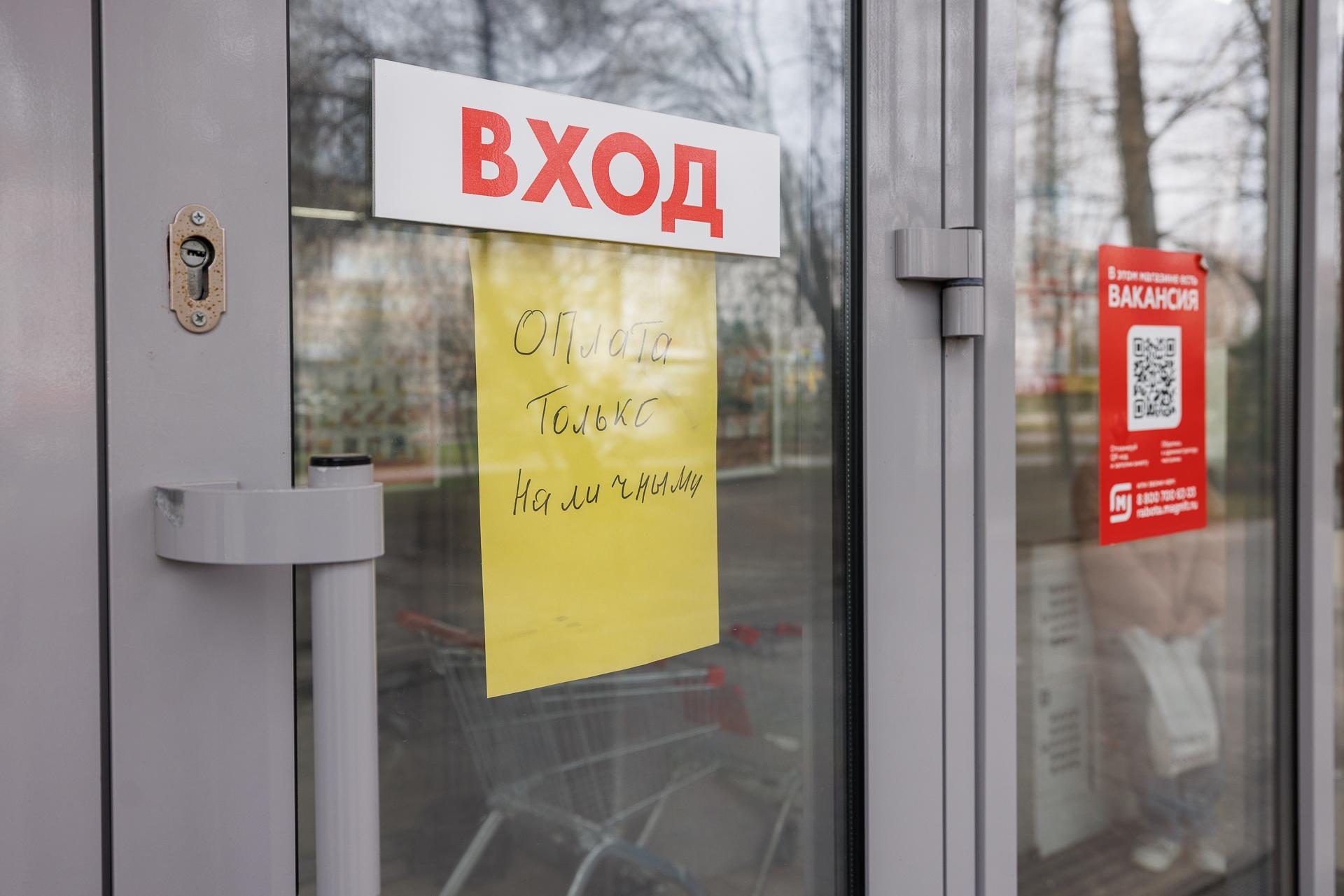 На дверях многих магазинов появились объявления: «Оплата только наличными». По словам продавцов, значительная часть покупателей эти предупреждения игнорирует.