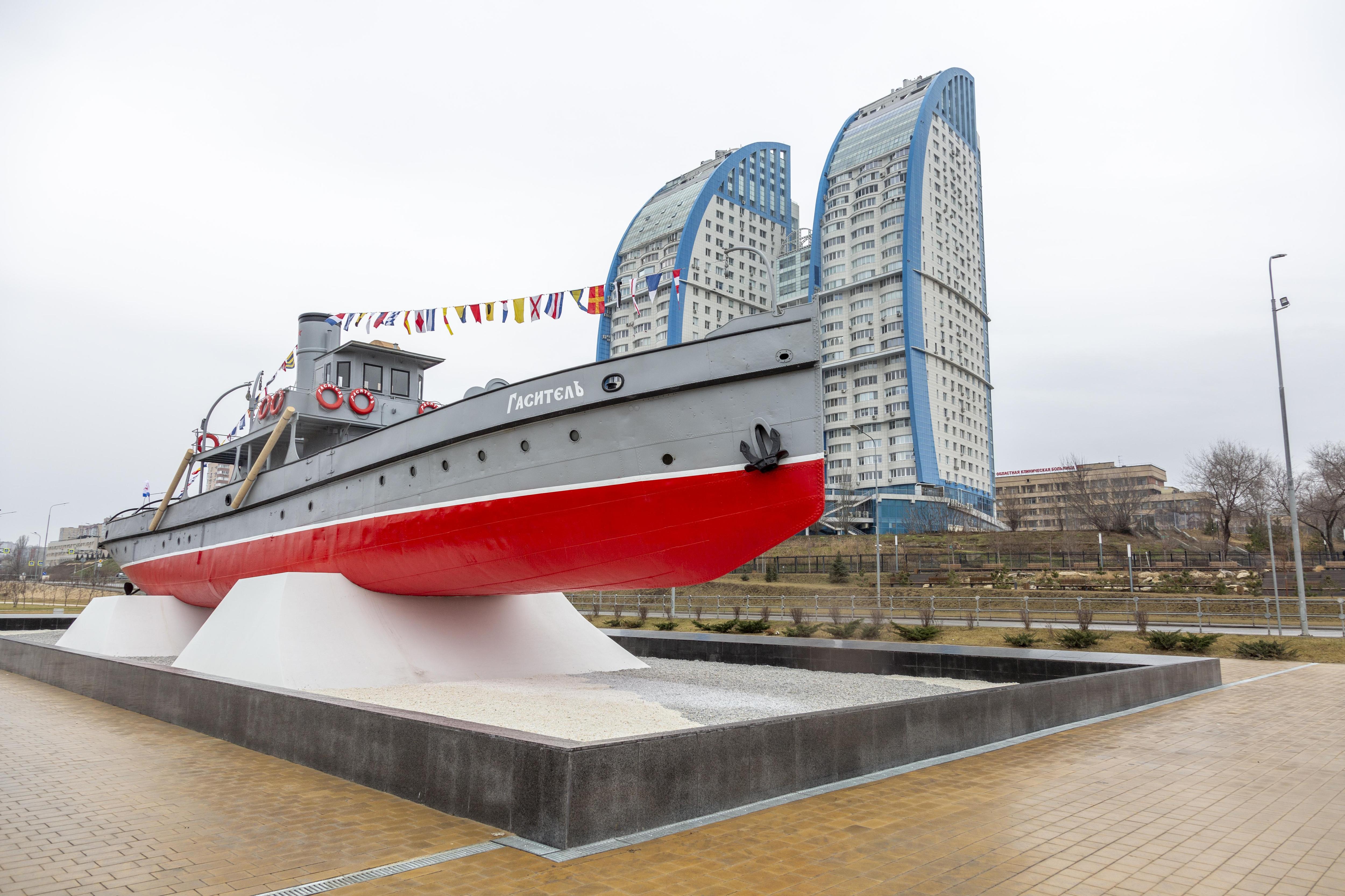 Катер «Гаситель» установлен в качестве памятника на берегу реки Царица.