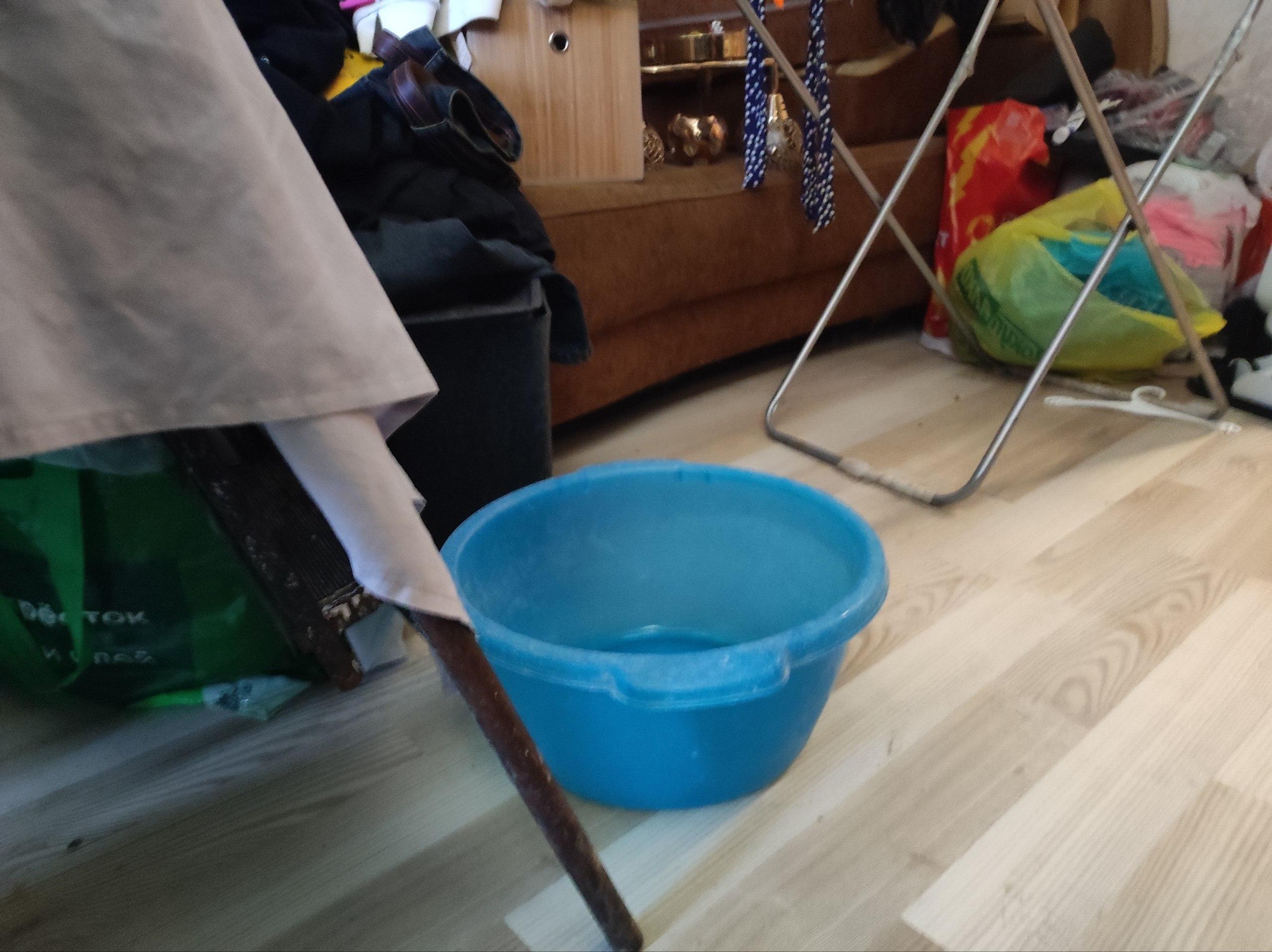 Вёдра и тазы стали постоянным элементом интерьера в полностью промокшей квартире.