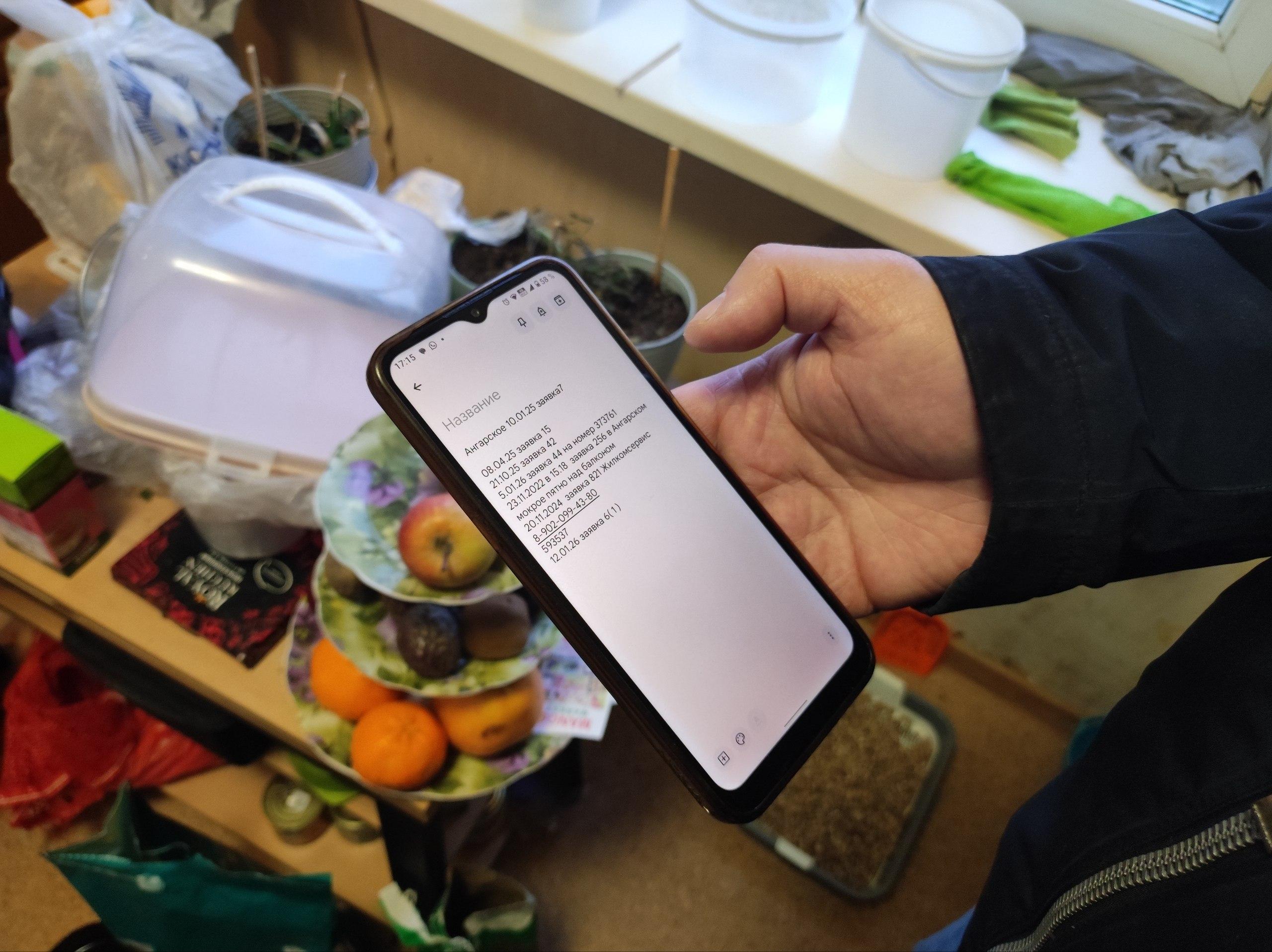 Мужчина фиксирует в телефоне даты и время всех своих обращений в управляющую компанию.