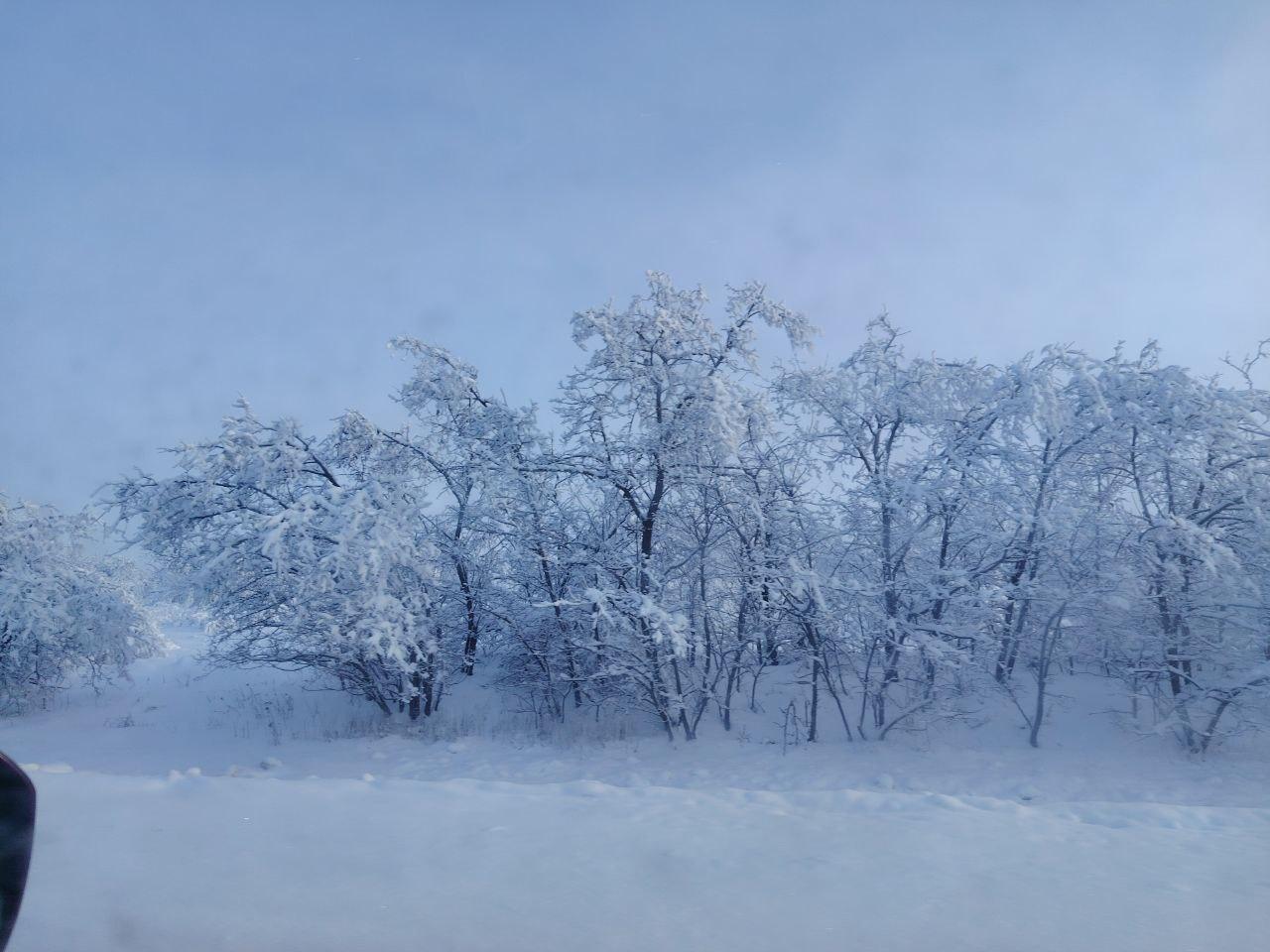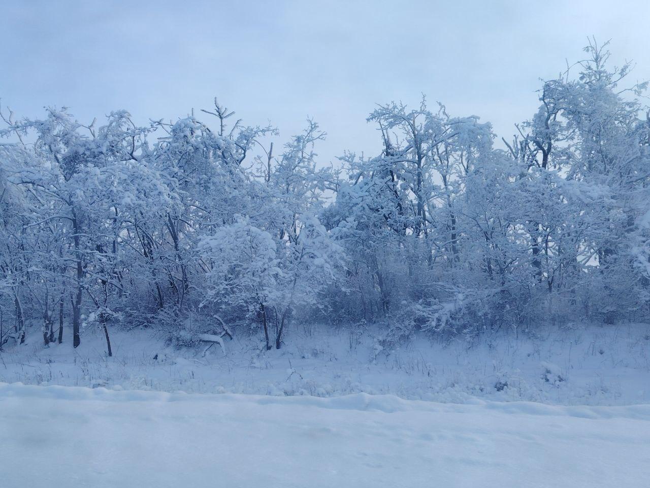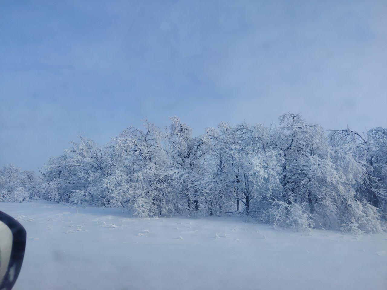 Волгоградская область наслаждается настоящей зимой с морозами и снегом. Живописные пейзажи можно увидеть всего в нескольких километрах от города на трассе Волгоград-Сызрань.