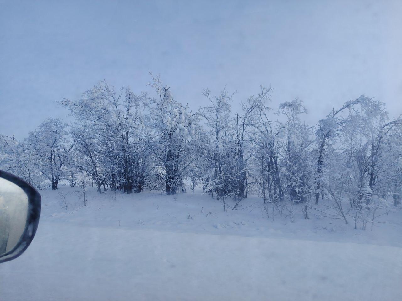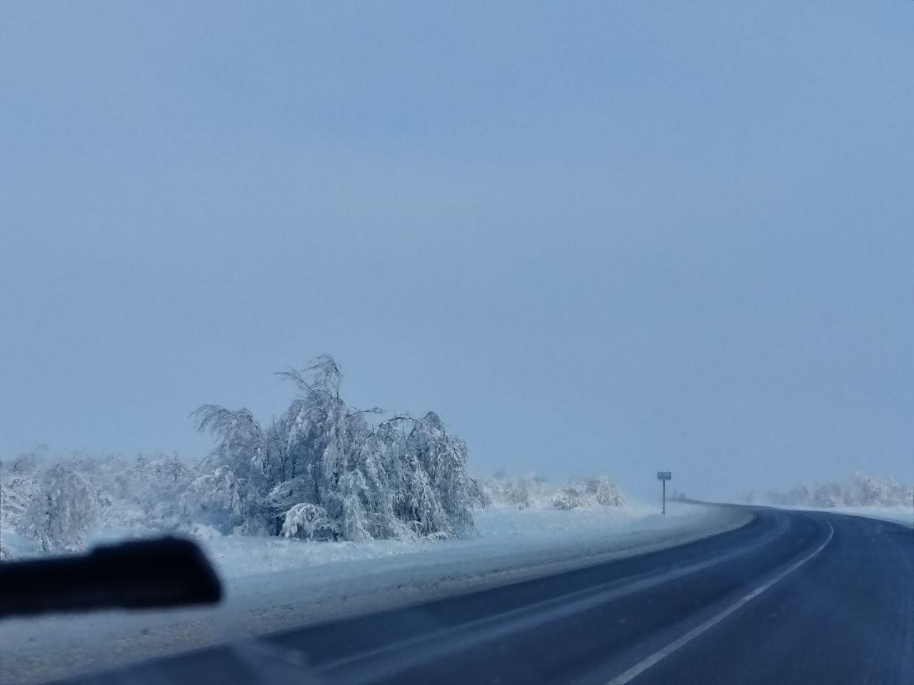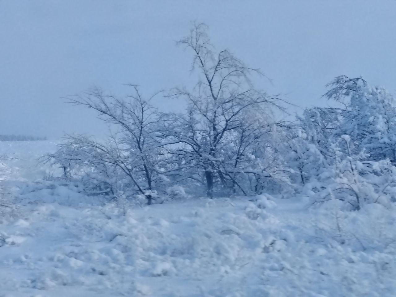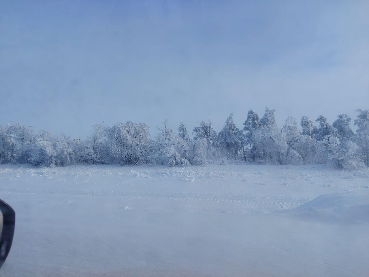 Волгоградская область наслаждается настоящей зимой с морозами и снегом. Живописные пейзажи можно увидеть всего в нескольких километрах от города на трассе Волгоград-Сызрань.