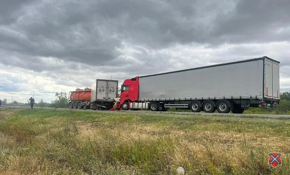 «Судом установлено, что фигурант уголовного дела в дневное время 2 июля 2025 года, управляя автомобилем „DAF FT XF 105460“ в сцепке с полуприцепом-цистерной „SF 3328“, следовал в сторону Саратова по федеральной автомобильной дороге Р-228 „Сызрань-Саратов-Волгоград“. — рассказали в прокуратуре Волгоградской области, — На 615-м км автотрассы фигурант уголовного дела выехал на полосу встречного движения, где совершил столкновение с грузовым фургоном марки „КАМАЗ“. После столкновения автомобиль обвиняемого продолжил движение вперед по инерции, передвигая „КАМАЗ“, задняя часть которого столкнулась с тягачом Shacman. В результате дорожно-транспортного происшествия 58-летний водитель КАМАЗа погиб на месте ДТП».