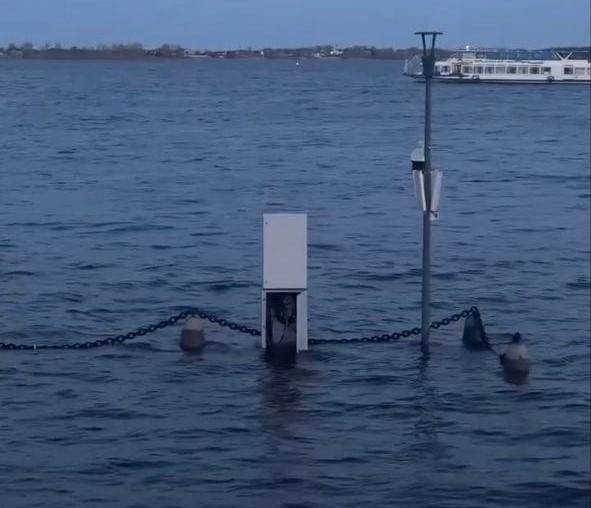 В центре Волгограда из-за выхода Волги из берегов оказался затопленным электрический шкаф у причала №9 речного порта. Горожане обратили внимание на открытую дверцу и торчащие провода, частично погружённые в воду.