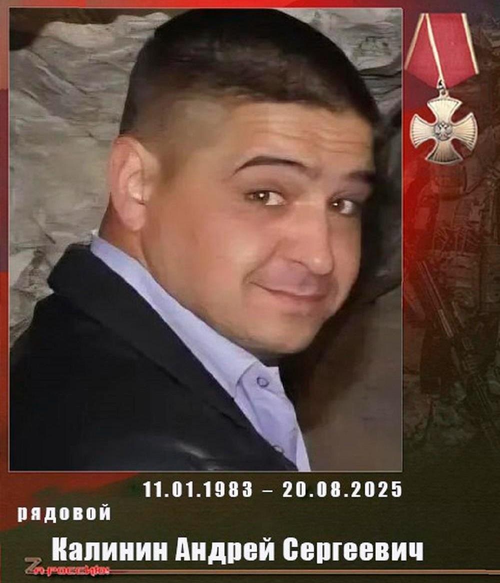 «20 августа 2025 года при выполнении боевой задачи в ходе специальной военной операции, погиб наш земляк Калинин Андрей Сергеевич. Андрей с честью выполнил свой воинский долг по защите Родины. Вечная ему слава и память! Соболезнование родным и близким», — написали в администрации.