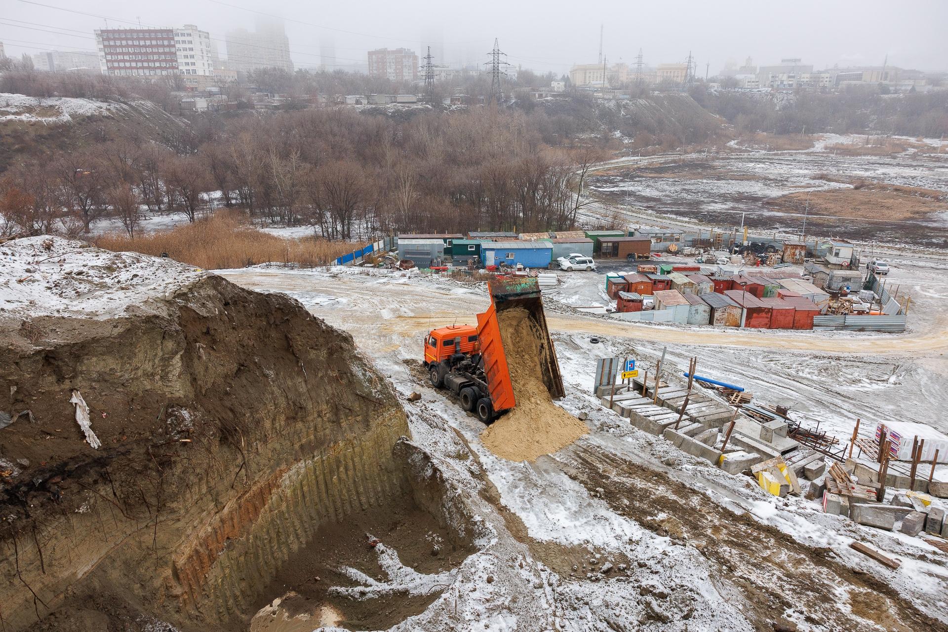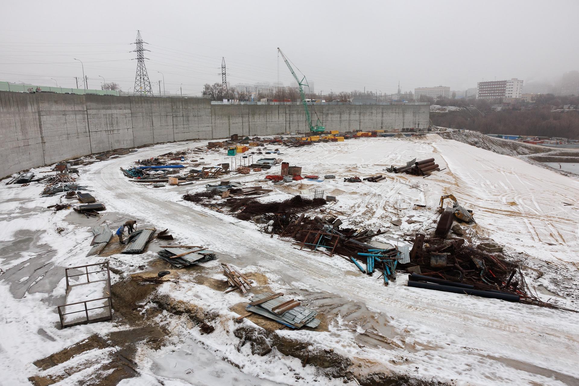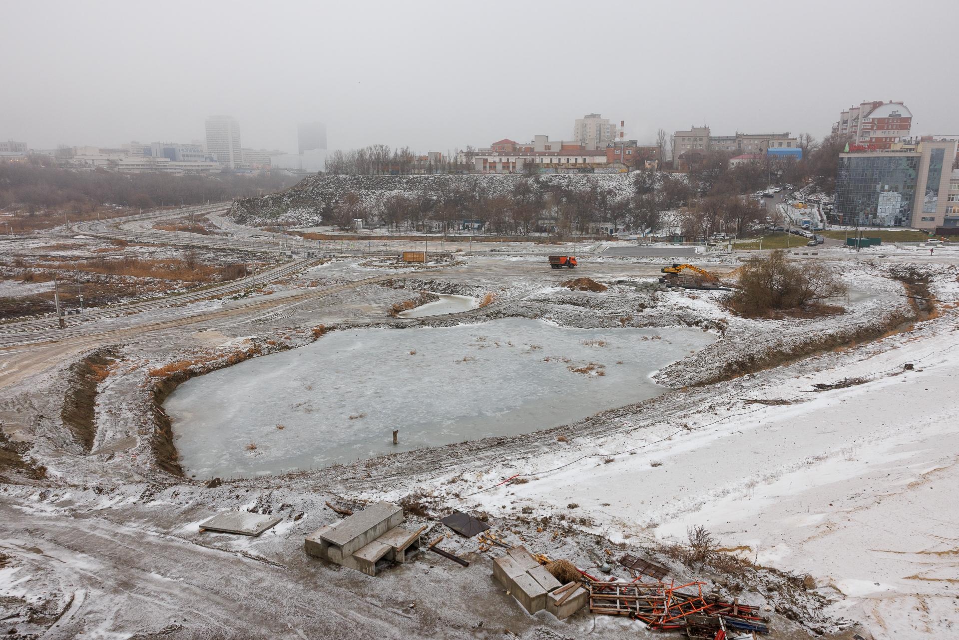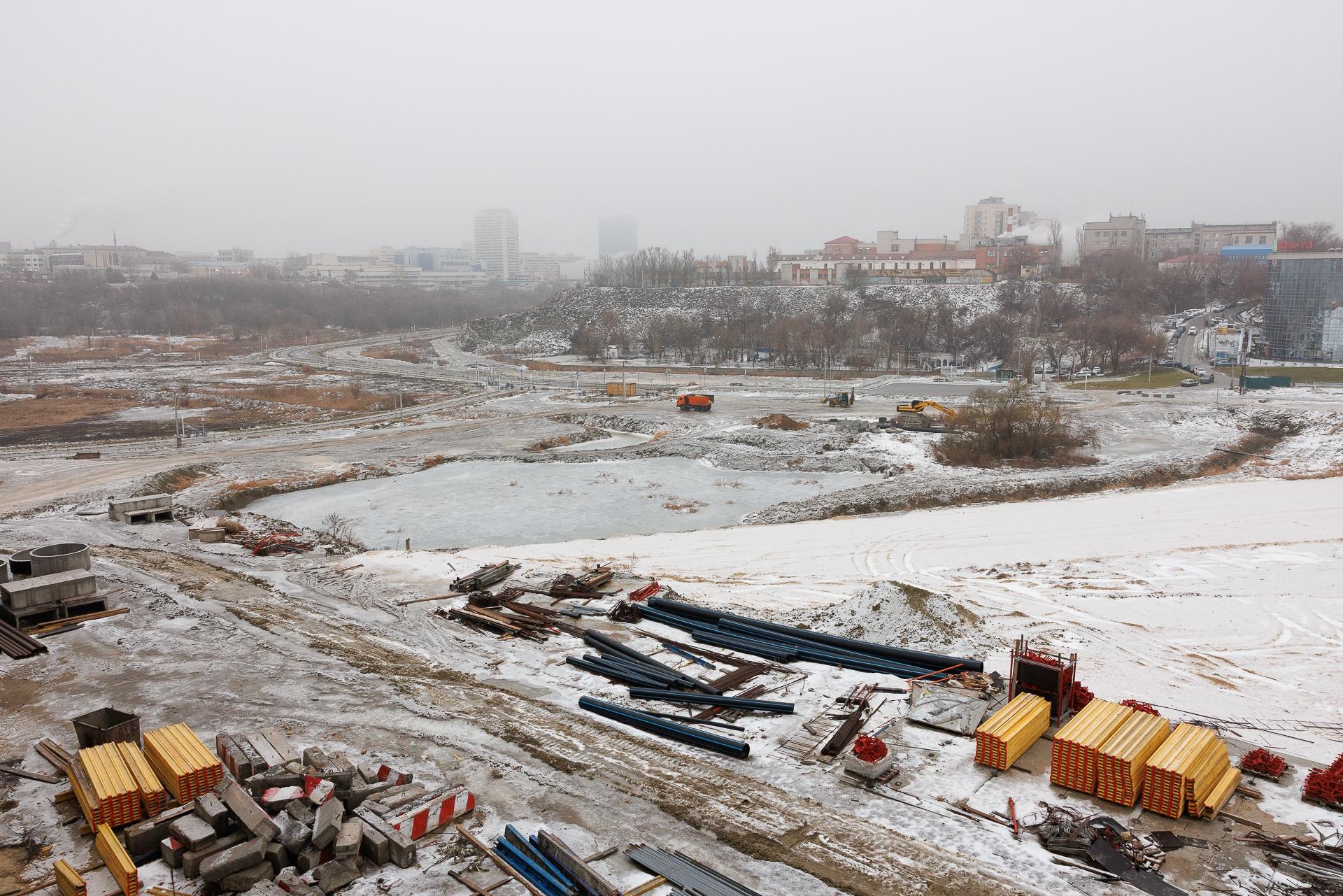 Территорию поймы, ранее занятую камышом и болотами, теперь занимает масштабная строительная площадка.