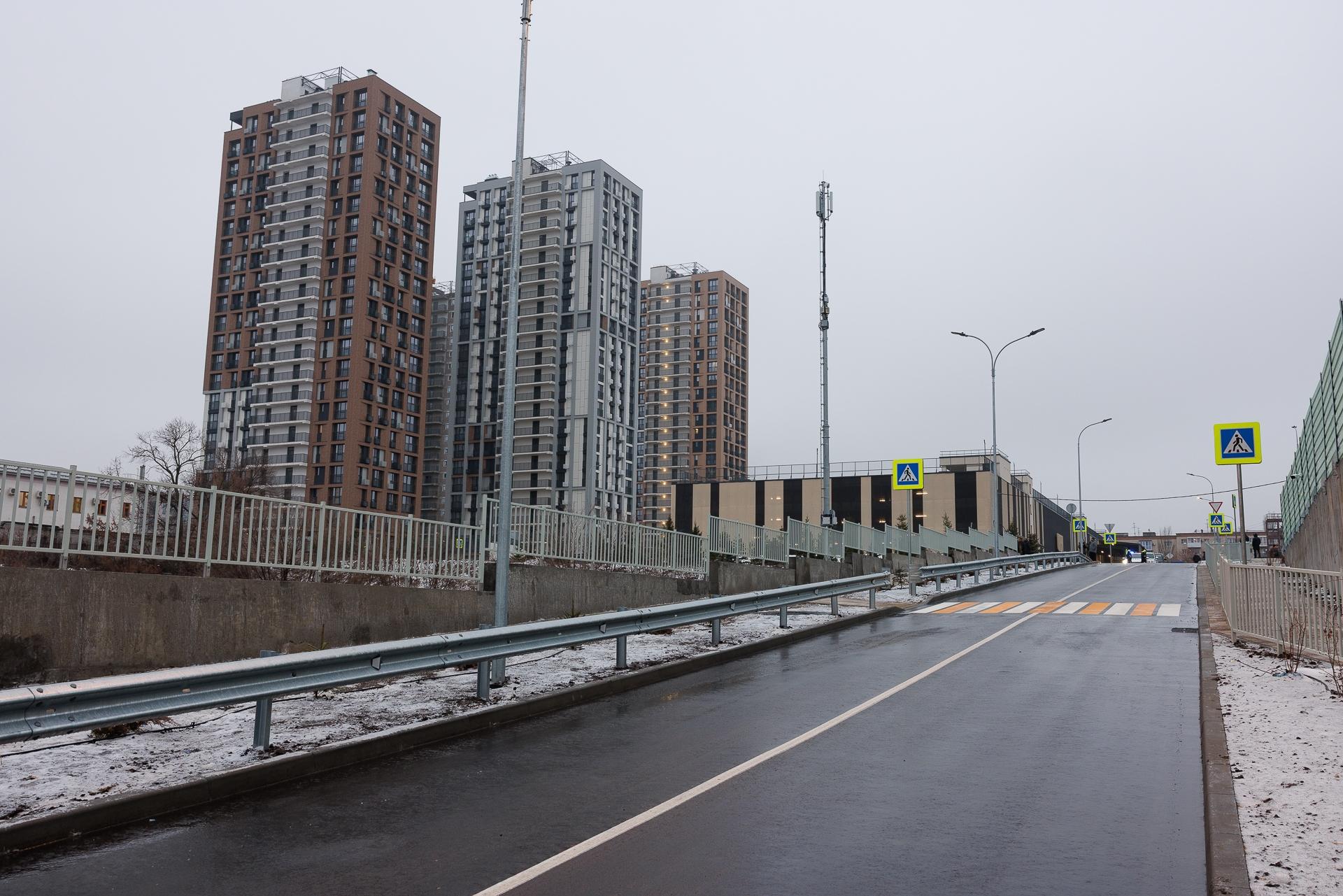 Выезд с новой дороги расположен рядом с высотным жилым комплексом «Урбан».
