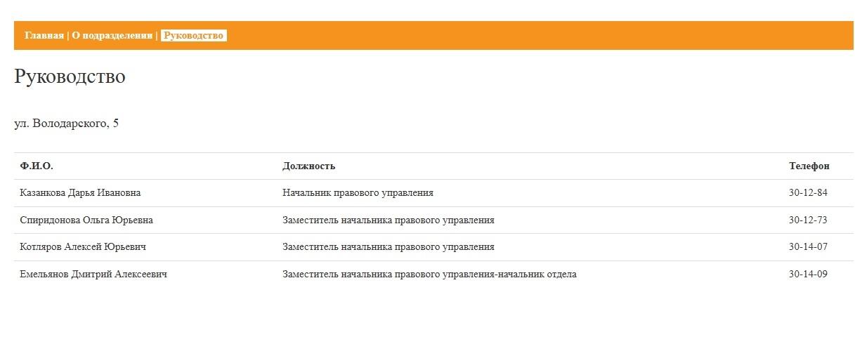 В разделе правового управления на сайте администрации Волгограда более не указана Дарья Казанкова, ранее значившаяся начальником. С 18 декабря обязанности руководителя и заместителя временно исполняет Ольга Спиридонова.