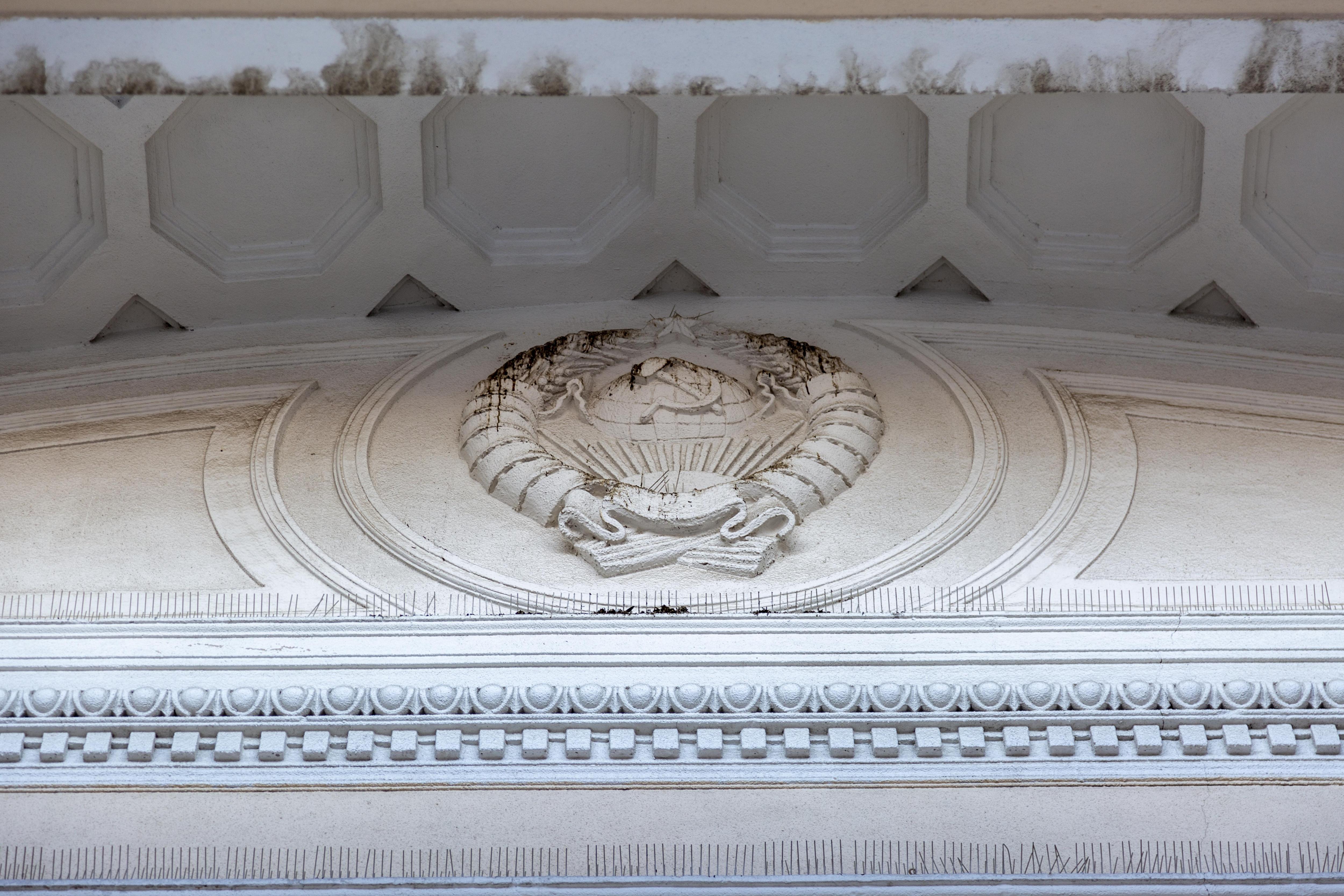Здание пока сохраняет первоначальный цвет сталинского ампира.