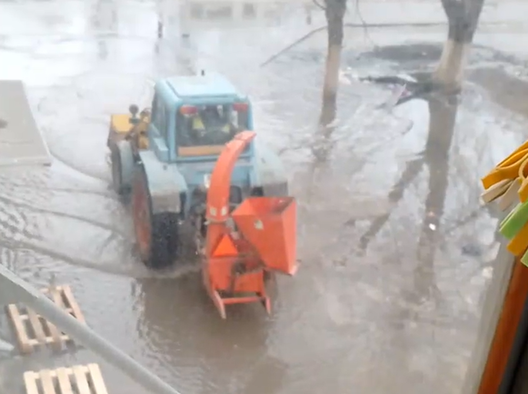 В Тракторозаводском районе Волгограда для устранения обширного скопления воды на улице Дзержинского задействовали трактор, оснащённый ковшом. Техника должна была вычерпать жидкость из углубления, но практика показала неэффективность такого подхода.