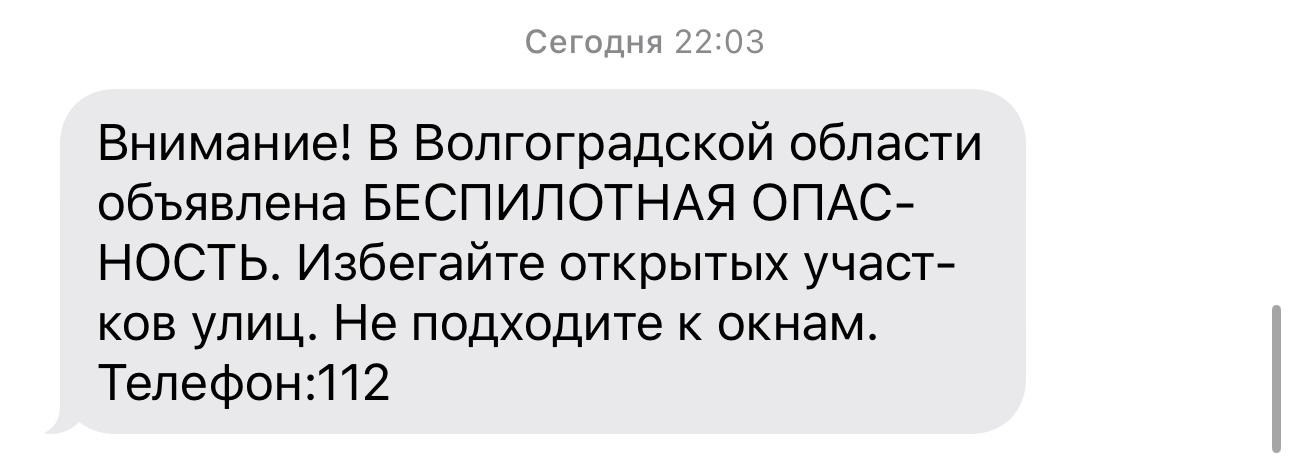 РСЧС распространила официальное предупреждение: «Внимание! В Волгоградской области объявлена беспилотная опасность. Избегайте открытых участков улиц. Не подходите к окнам. Телефон: 111».