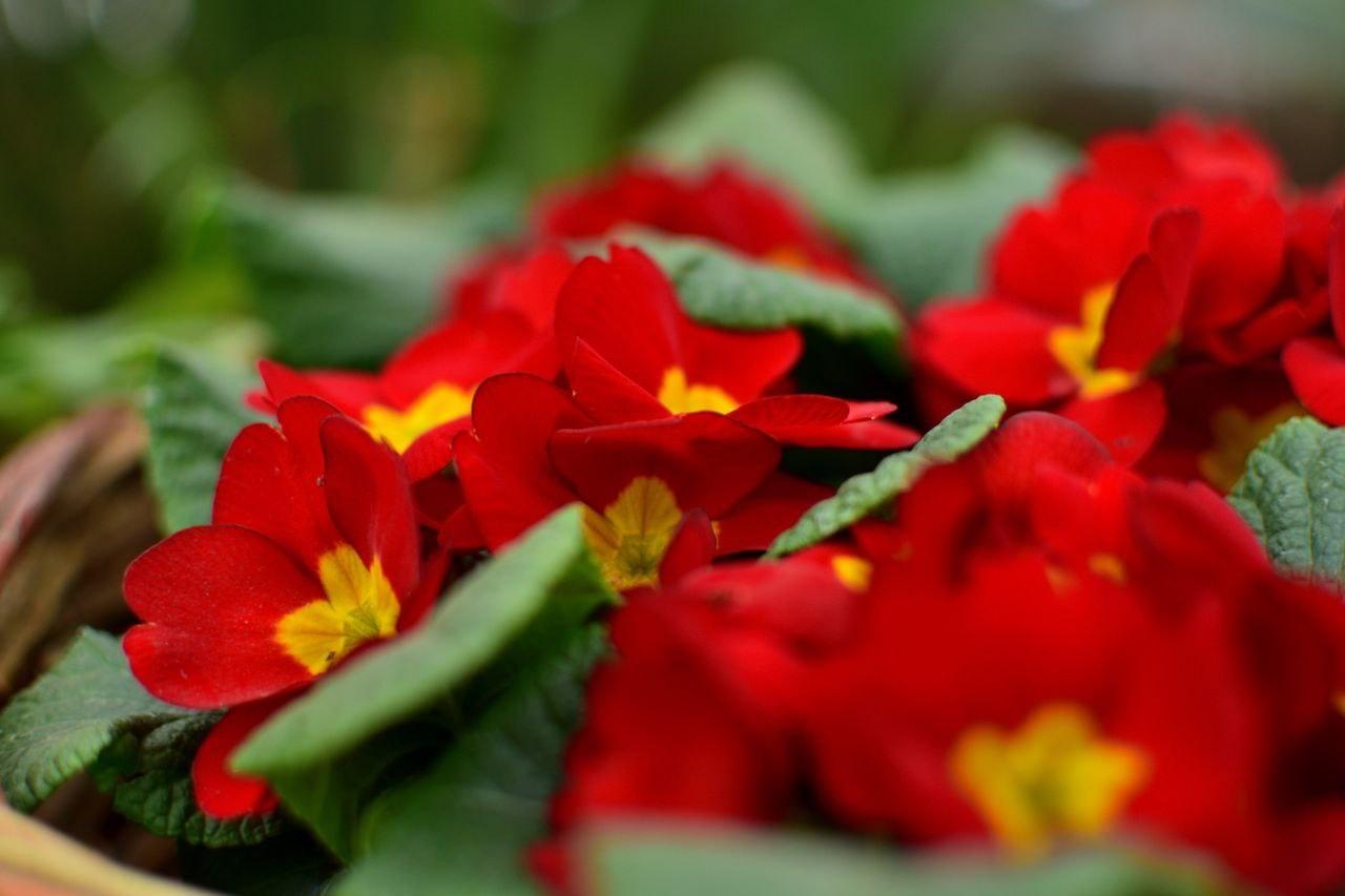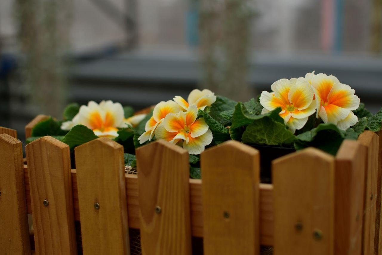Яркие первоцветы расцвели в оранжереях ботанического сада, создавая контраст с зимней погодой за окном.