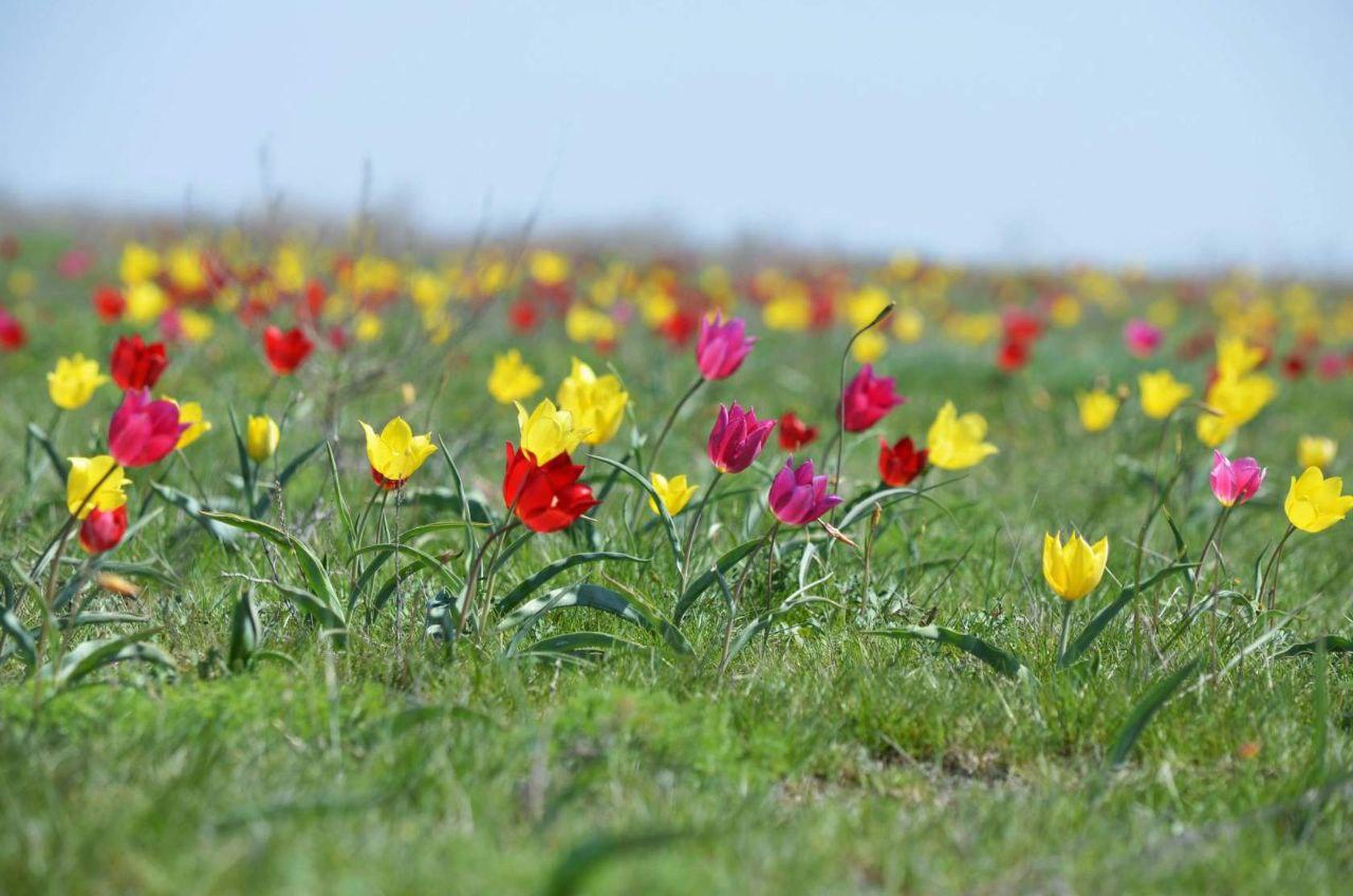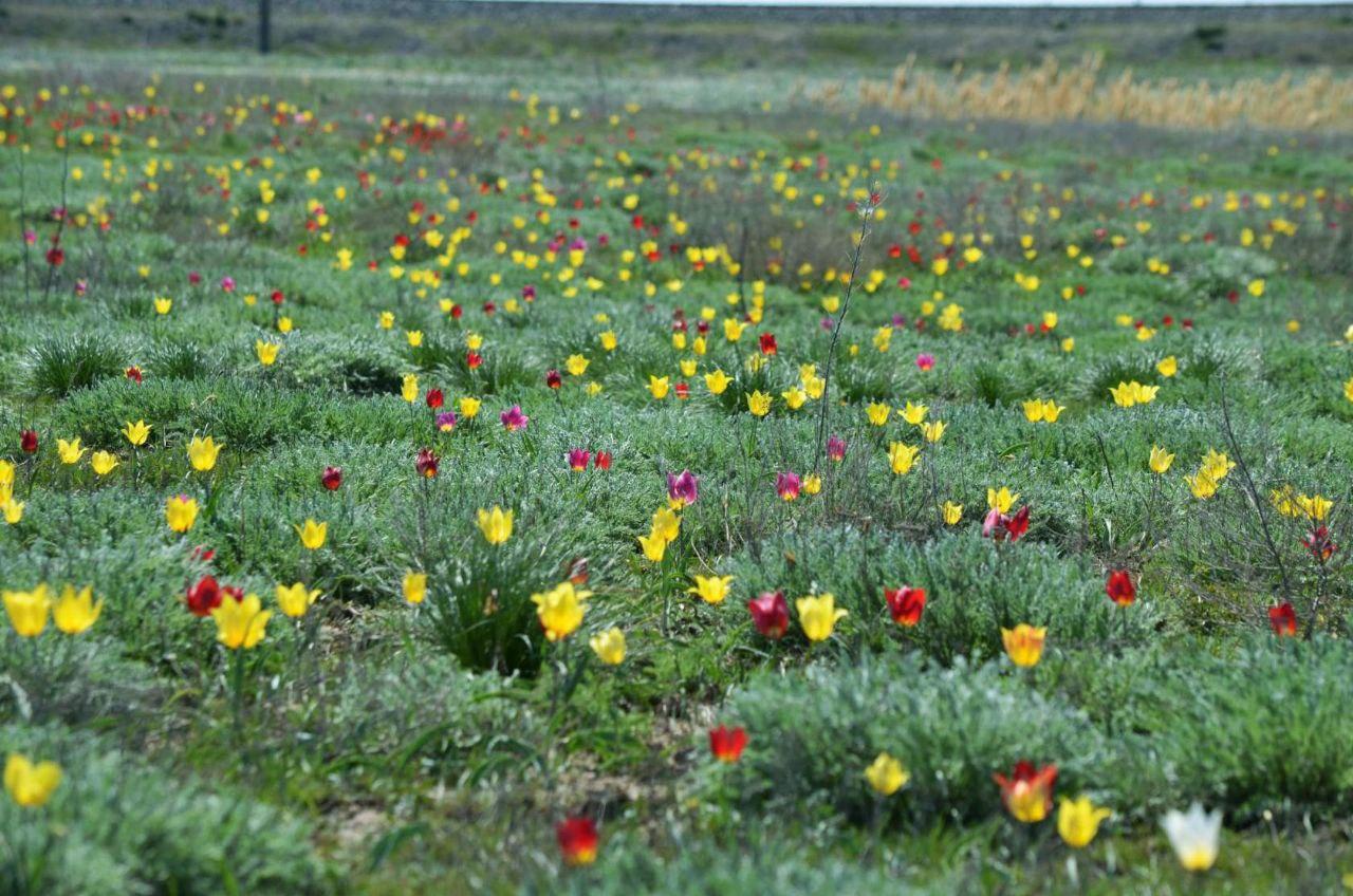 Вскоре степные просторы преобразятся: к зелени травы добавятся яркие пятна тюльпанов и других весенних растений. Увидеть это разноцветье можно в степи недалеко от Волгограда.