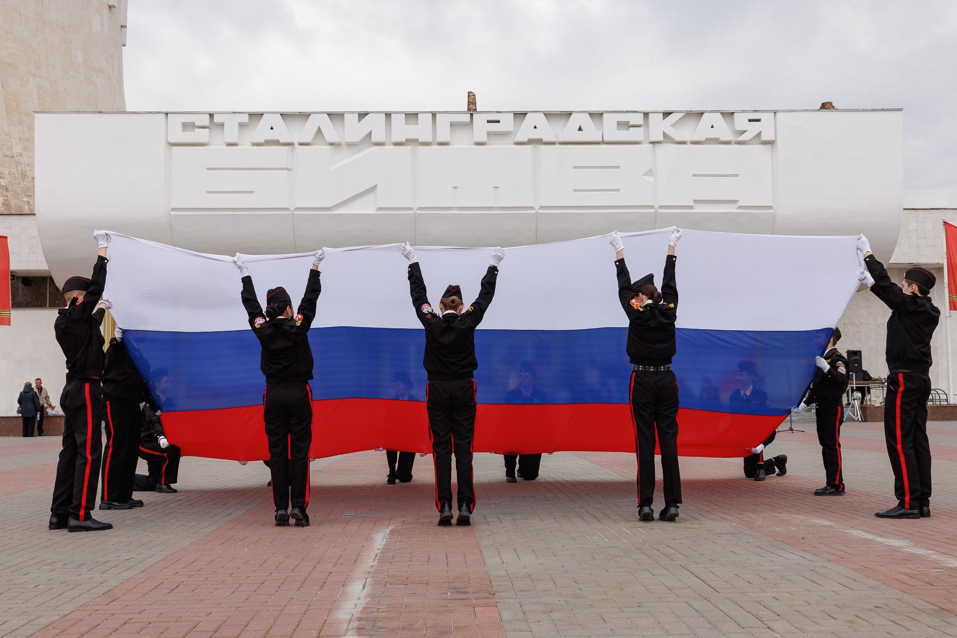 Развертывание флага России на фоне музея-панорамы производило сильное впечатление