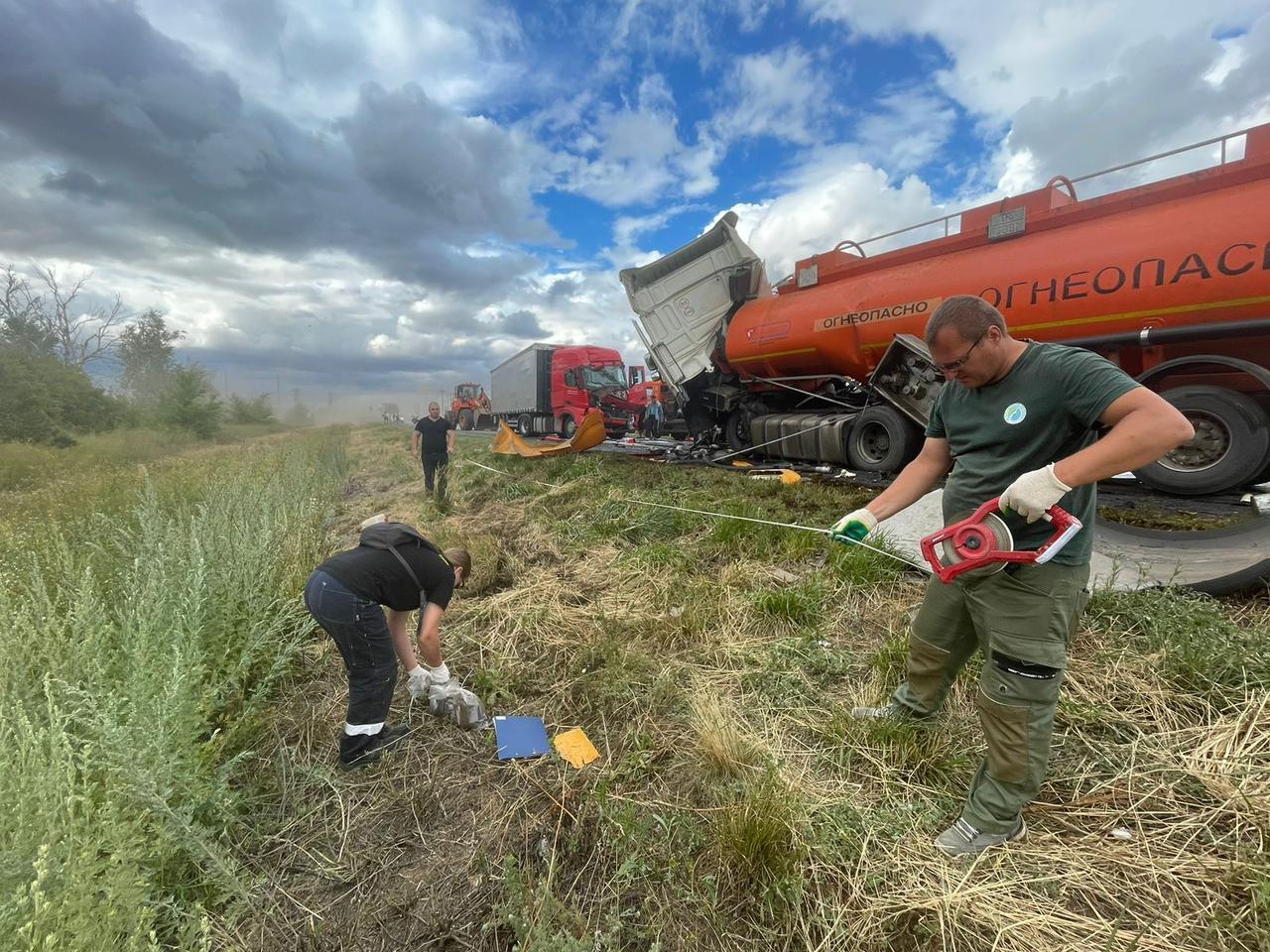 «В 11:35 на 615-м километре автодороги Р-228 Сызрань — Саратов — Волгоград Дубовского района 47-летний водитель, управляя грузовым автомобилем марки ДАФ с автоцистерной, двигаясь со стороны Волгограда в сторону Камышина, в нарушении правил дорожного движения осуществил выезд на полосу встречного движения и совершил столкновение с автомобилем марки КАМАЗ, — сообщали тогда в полиции. — После чего КАМАЗ совершил столкновение с грузовым автомобилем марки „Чанган“».