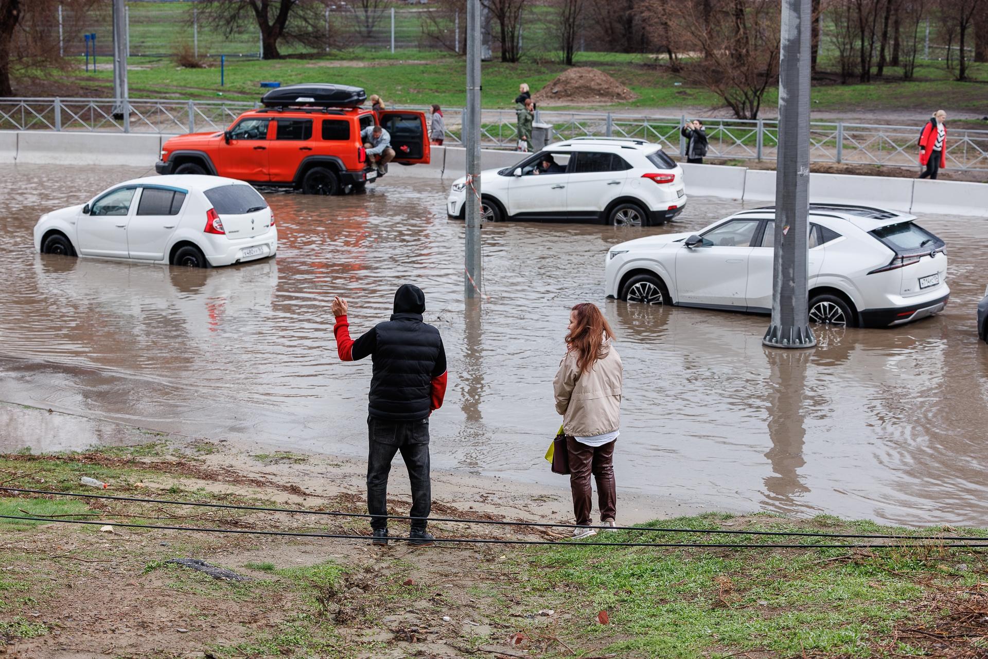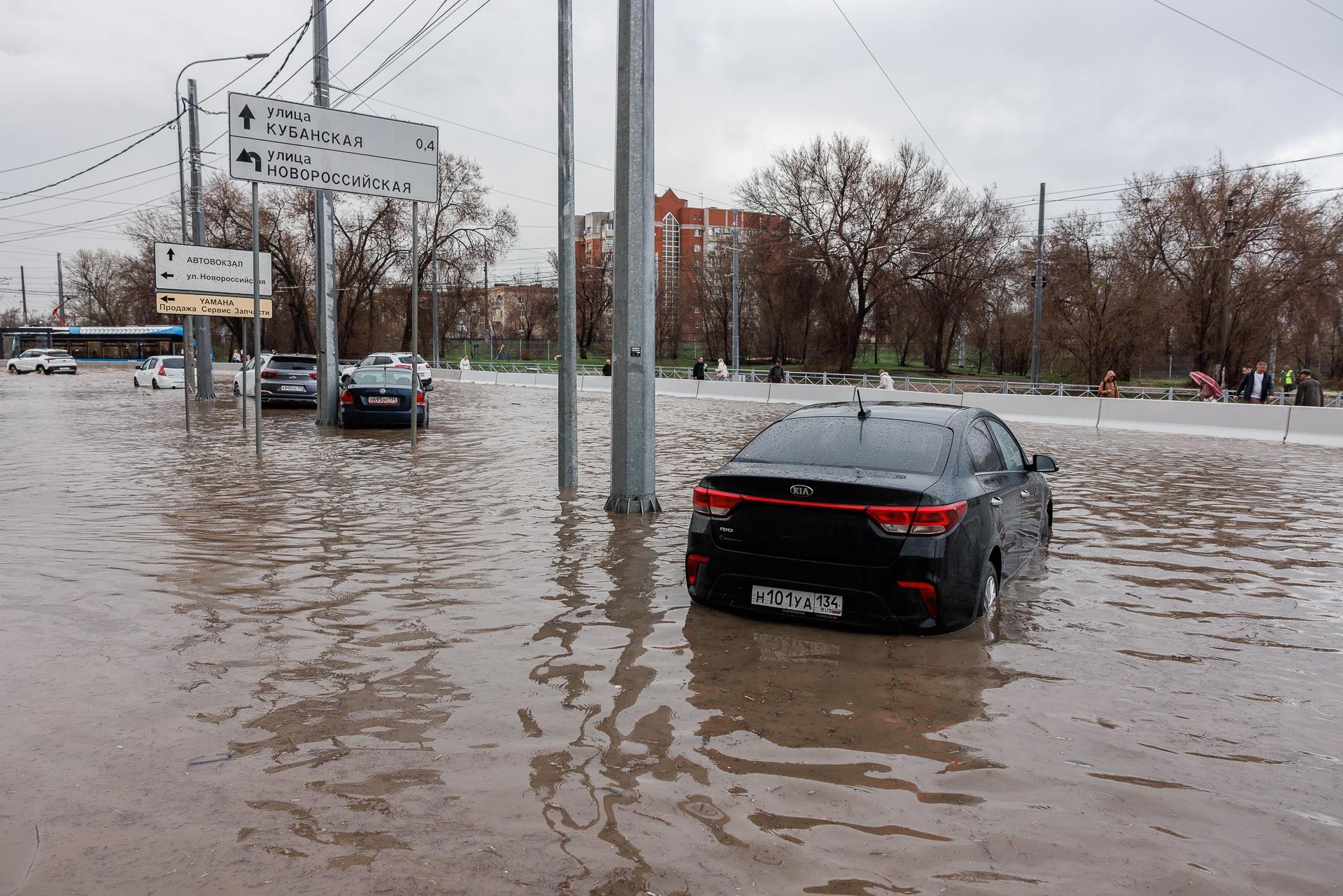 За несколько часов в Волгограде выпала месячная норма осадков, система ливневой канализации не выдержала напора.